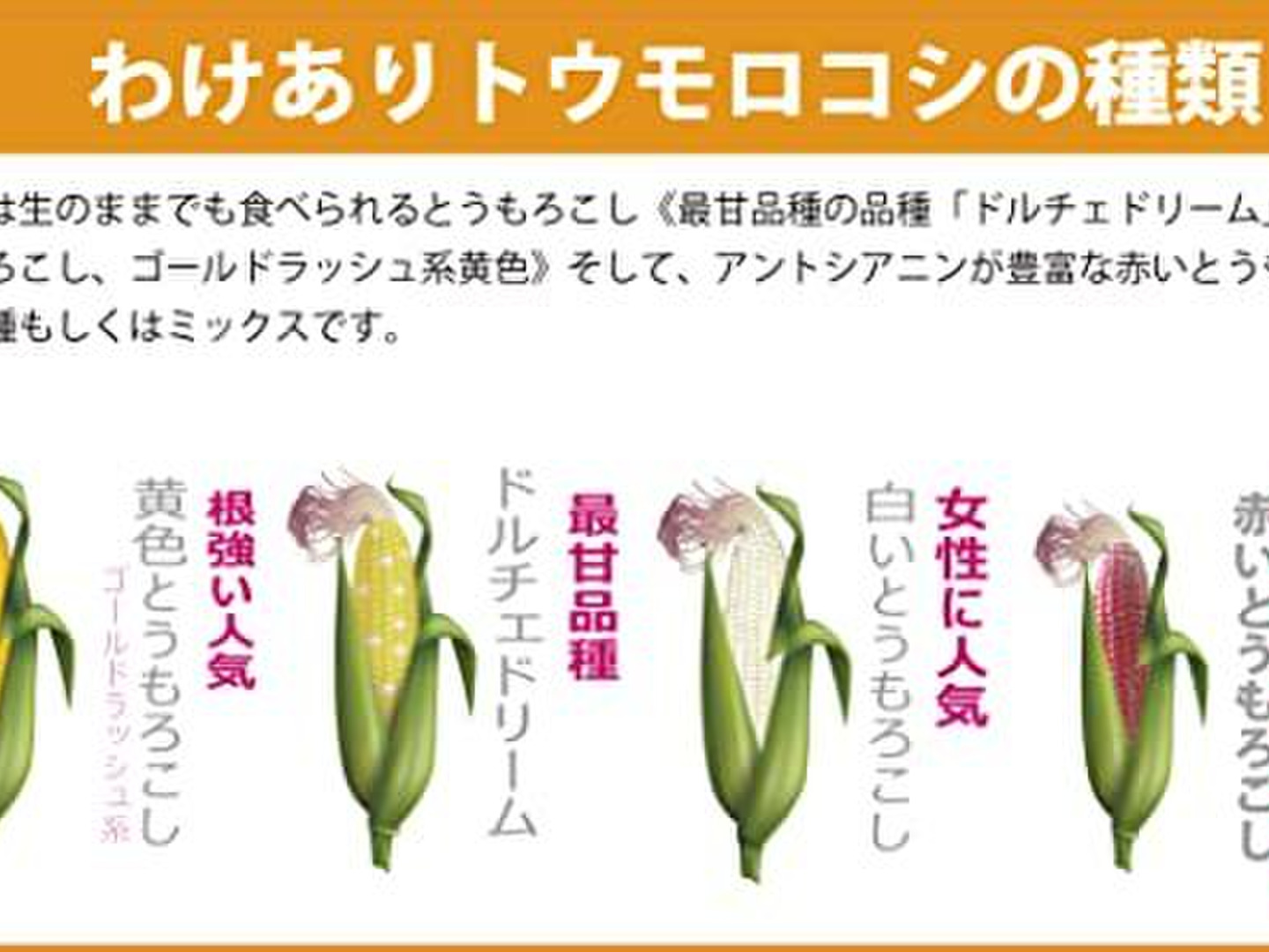 - 朝6時収穫、夕方出荷の新鮮トウモロコシです
