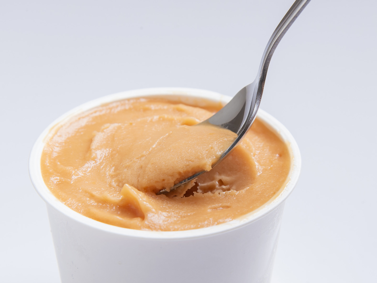 まわりが少し溶けてきたら、スプーンで空気を含ませながら練り混ぜ、よりなめらかな食感と味わいを楽しむのもオススメです。
