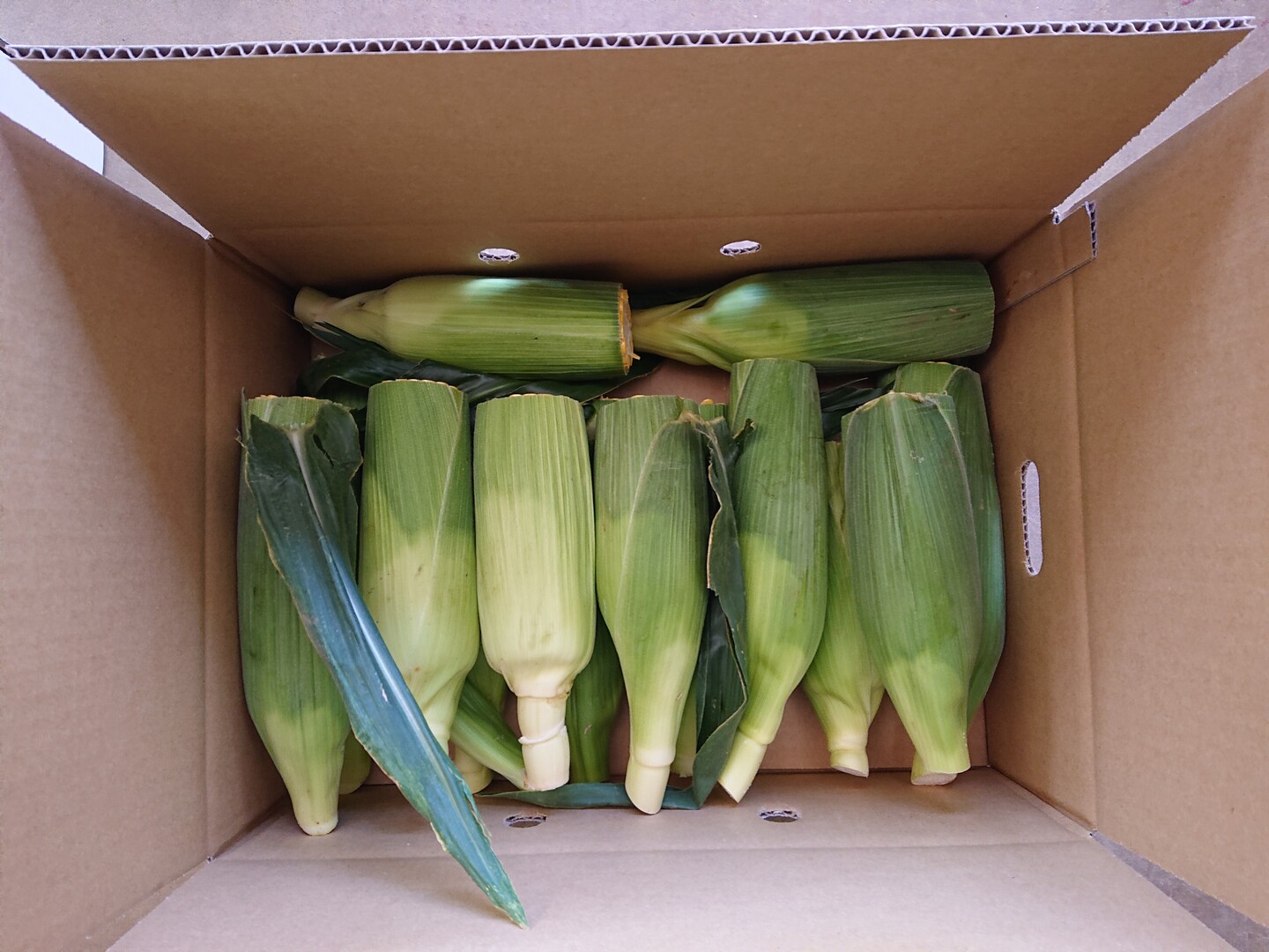 糖度が一番高く保たれている早朝(日の入り前)に収穫作業を終わらせ、鮮度重要のトウモロコシ、収穫後に予冷をしクール便にて鮮度保持に努め発送させて頂きます。