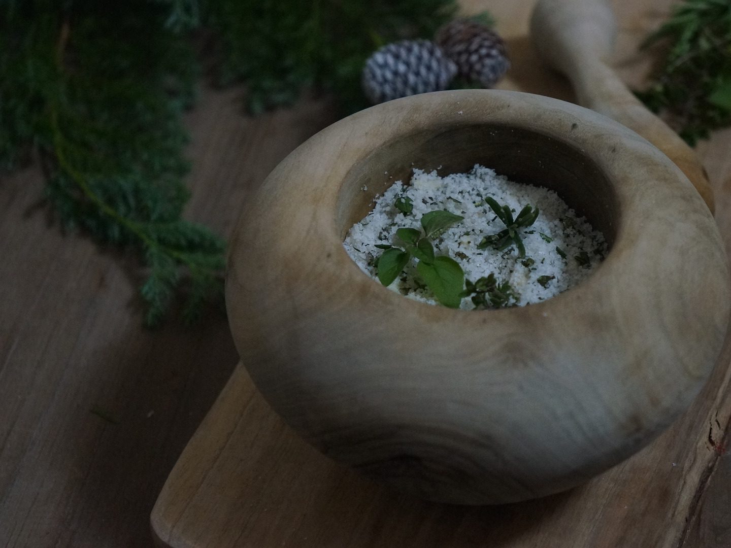 オレガノなどのフレッシュハーブとルッコラセルバチカ、旬のおまかせ野菜が入ります。