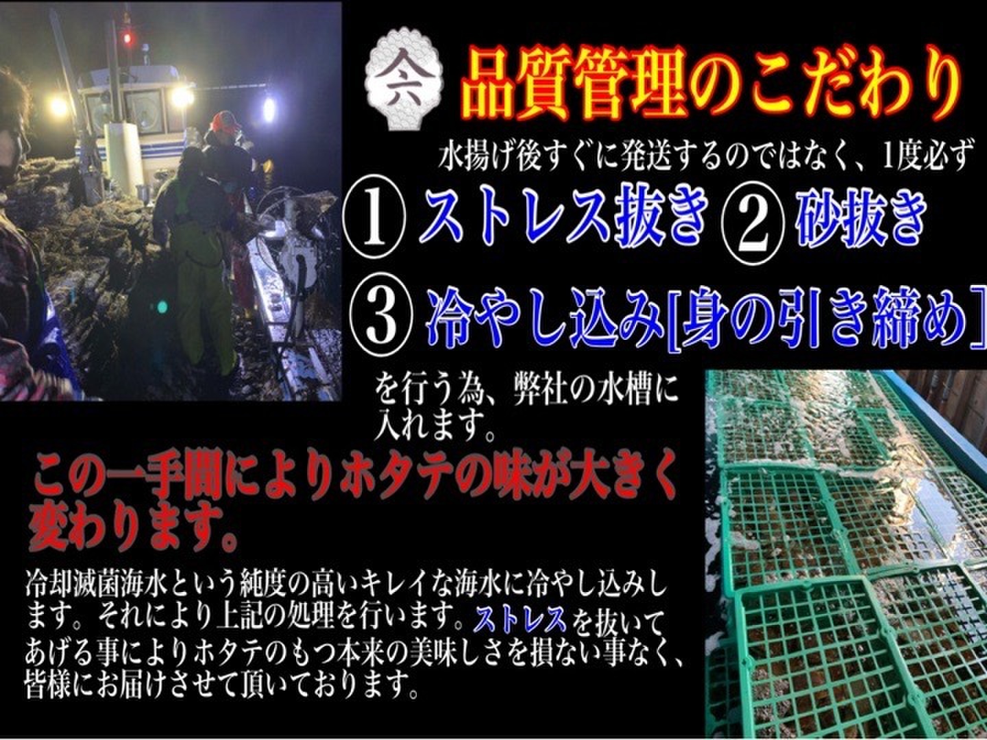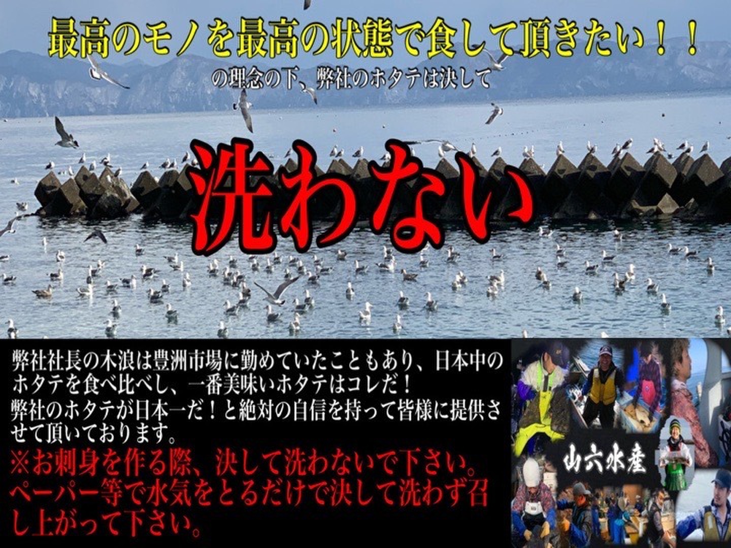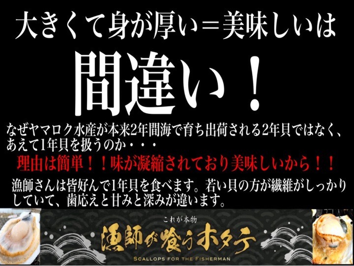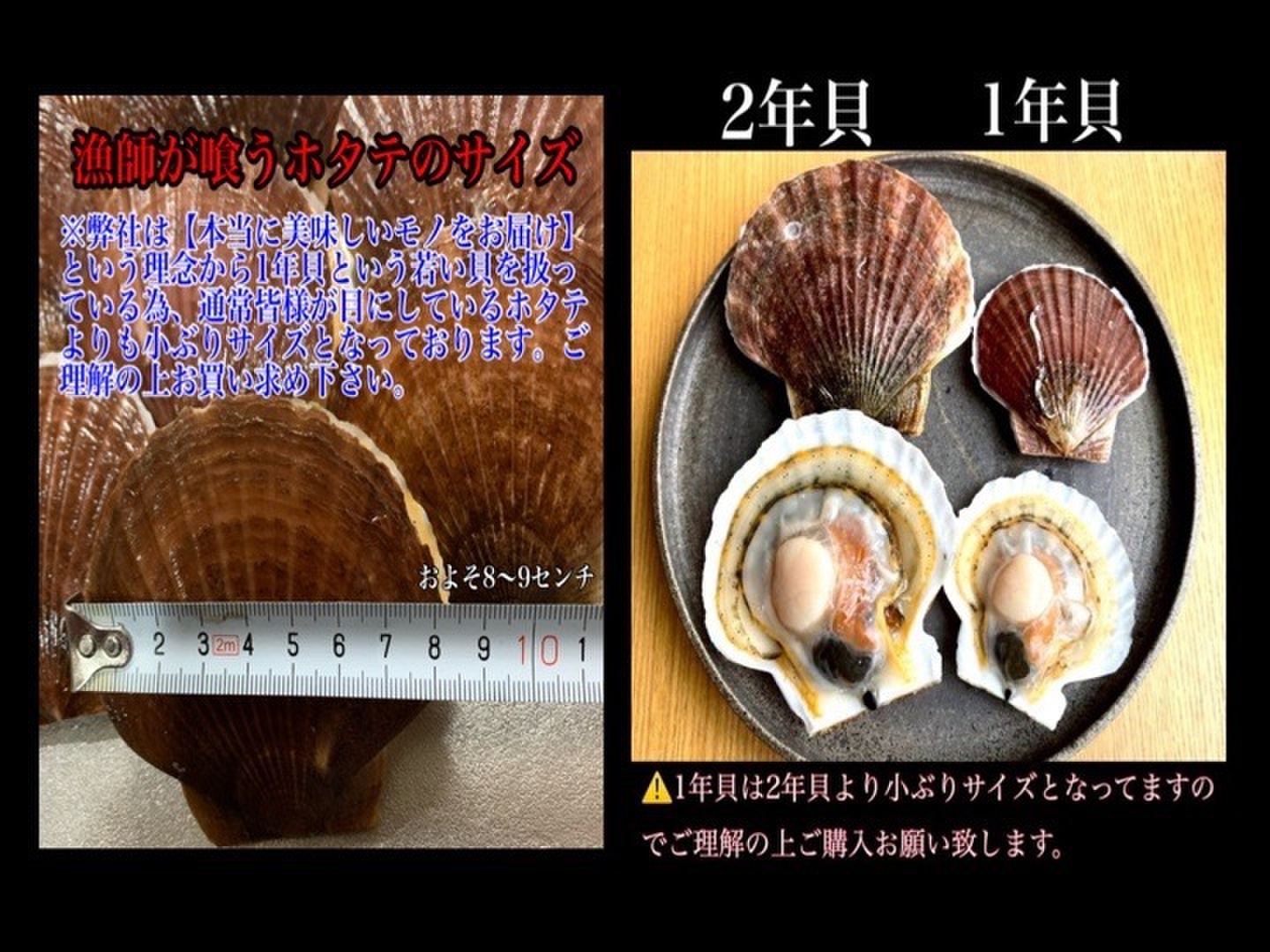 *弊社は【本当に美味しいモノをお届け】という理念から1年貝という若い貝を扱ってる為、通常皆様が目にしているホタテよりも小ぶりサイズとなっておりますので、ご理解の上お買い求めください。