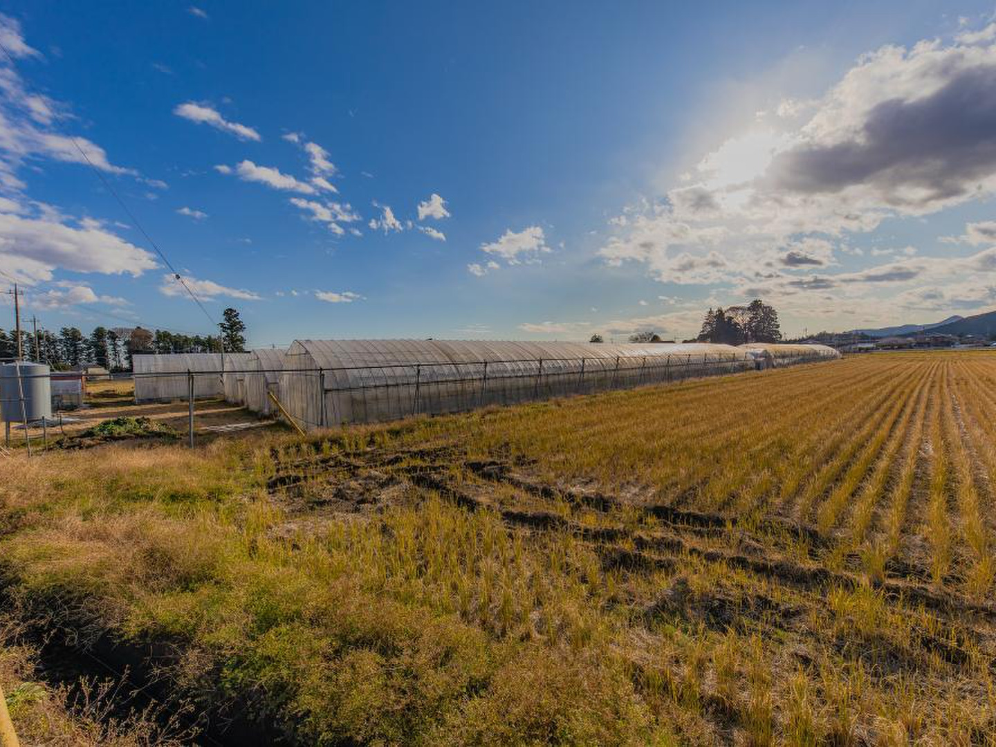 寒い日はマイナス10℃まで冷える鬼怒川の傍で地下水熱(ウォーターカーテン)を使用した越冬栽培作をメインに通年栽培しています。ウォーターカーテン栽培は暖房機、ヒートポンプの使用時間を極限まで短縮することができるため、排出CO2を削減できる半面、厳寒期の温度管理がシビアになるため、トマトに(特に根に)大きな温度ストレスがかかります。当園ではその温度ストレスを食味向上の要素として肯定し、他の環境ストレス、特に水分ストレスをAI自動灌水システムを採用することにより排除したストレスコントロール型の栽培を行っております。鬼怒川近く(氾濫原)の極端な砂目土壌での土耕栽培です。
