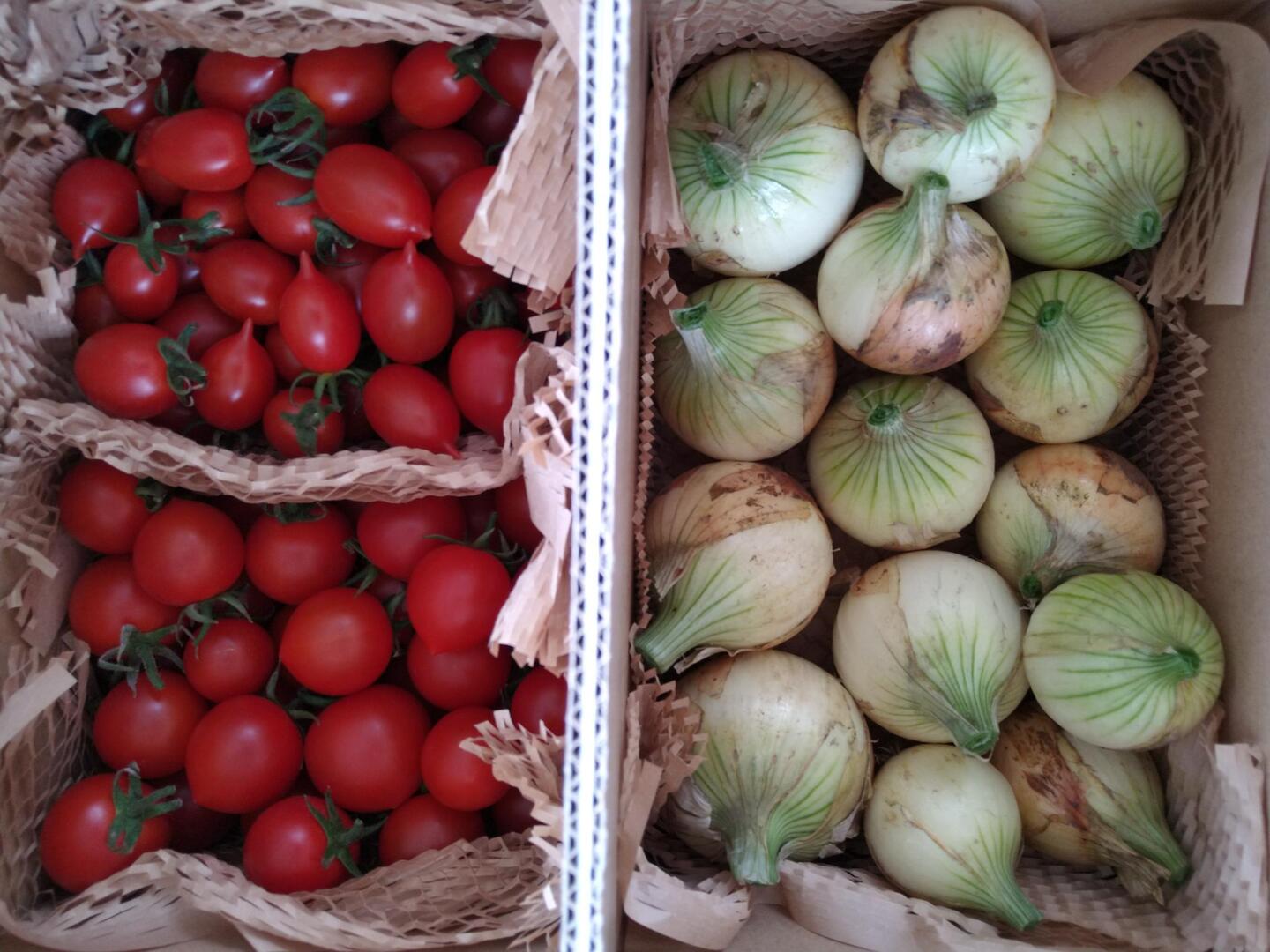 中玉・ミニトマト2品種と新たまねぎ合計2kg