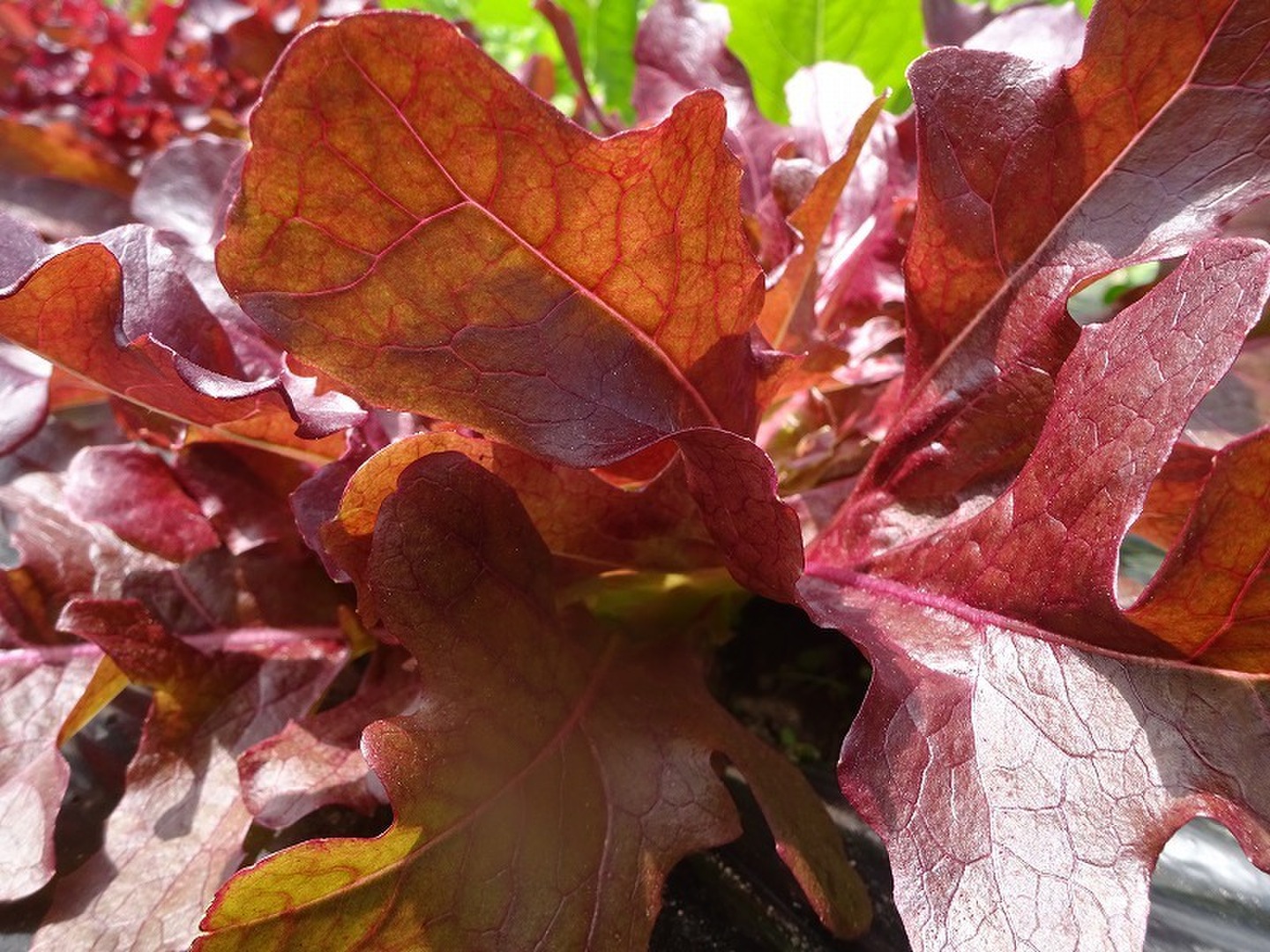 レッドウェーブは縁取りが赤く、中央はグリーンのフリルレタスでボリュームもでます。