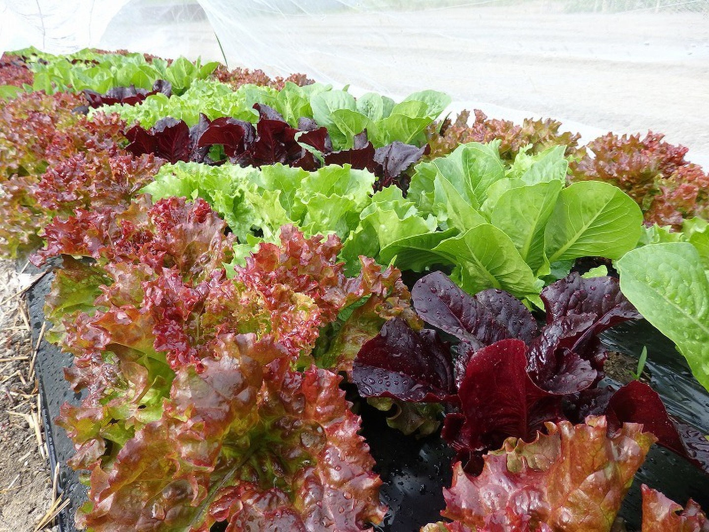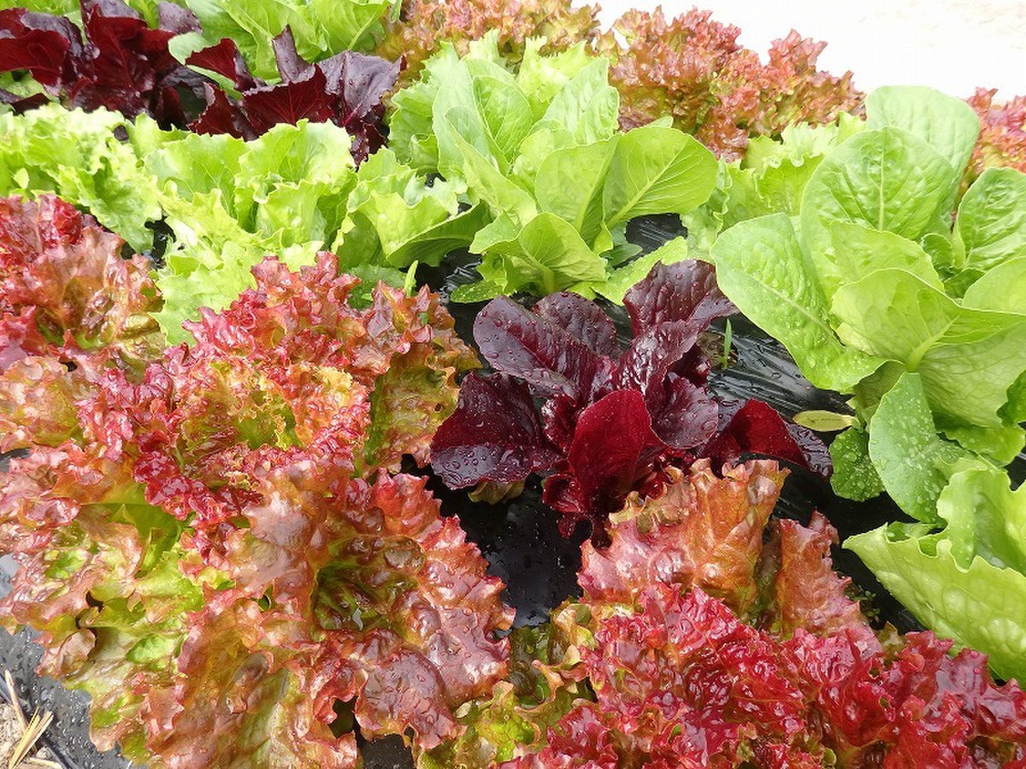 今季の当園のレタスは複数の種類を1つの畝に植えたミックス栽培です。