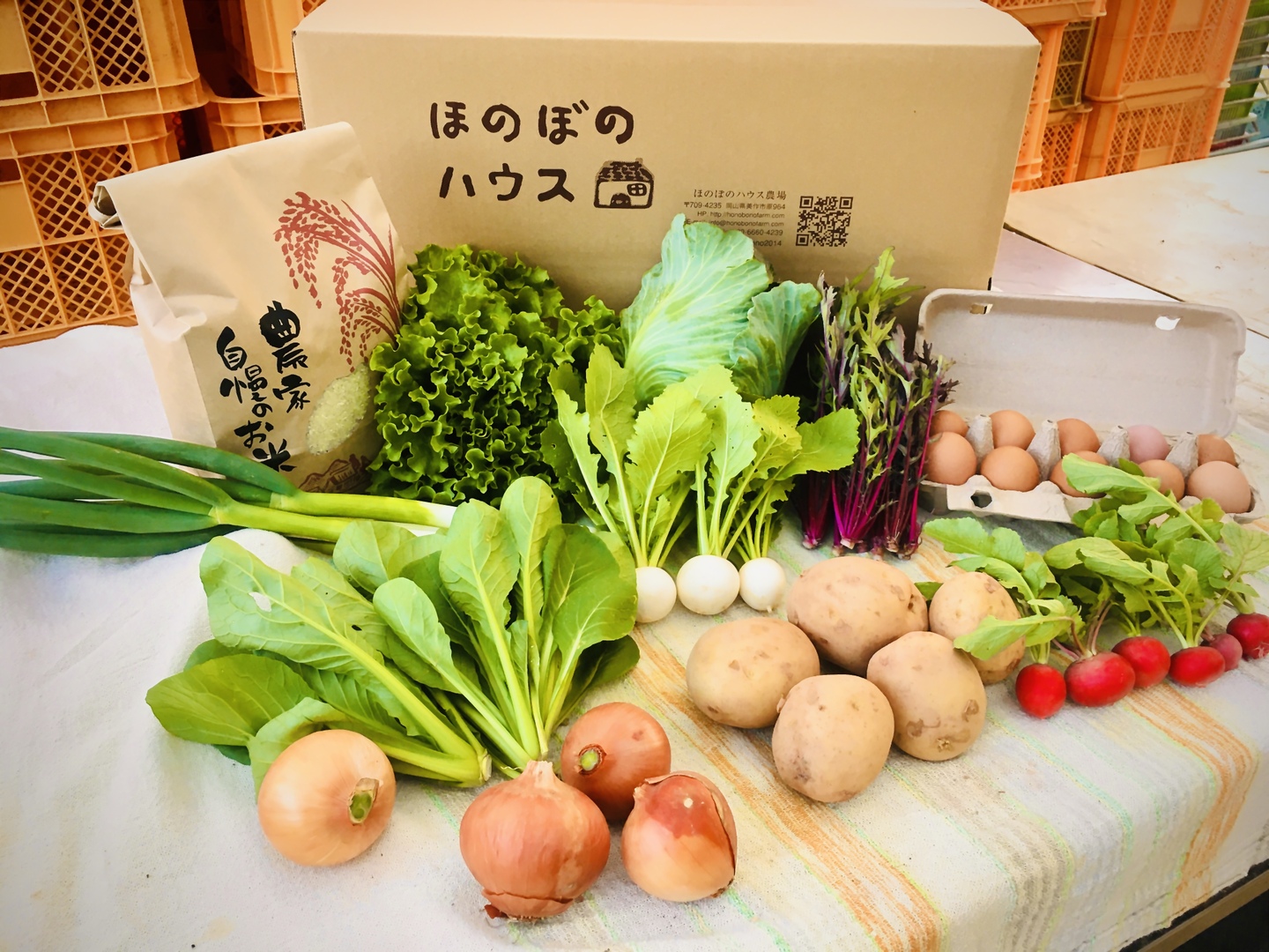 商品について あわせ買い対象 同生産者の別の「あわせ買い対象」商品と一緒にご注文いただくと、送料をまとめてお届けできる場合があります。 生産者からのお知らせ ※配送日の指定について関東地方の方水曜午前×水曜午後◯木曜終日◯金曜午前×金曜午後◯土曜終日◯北海道・沖縄とその他離島にお住いの方への販売を休止しております。申し訳ございません。※野菜セットご注文の方は、野菜の内容指定はできませんので予めご了承下さい。 もっと見る 内容 米6kg、野菜10種、卵20個 発送 日本郵便 送料 ¥ クール便(冷蔵) + ¥ 645 数量1点ごとに送料が発生します。 種別 野菜 卵・乳製品 米・穀類 野菜セット 産地 岡山県 農薬化学肥料不使用 野菜 卵・乳製品 米・穀類 野菜セット 贈答品 家庭用 岡山県x野菜 岡山県x卵・乳製品 岡山県x米・穀類 岡山県x野菜セット 商品説明 <商品内容>れんげ畑で育てたお米6kgと赤土でじっくり育てた季節の野菜を10種類(L)と平飼い卵20個が入ったお得にたっぷり有機野菜を楽しんでいただけるセットです。※写真はMセットの内容量です。Lセットはさらに2,3種類多いか、又は品目が増えます。買い物が大変なお米も、季節の野菜、自然卵(有精卵)と共に一度にたっぷりお届けできます。定期便にするとさらにお得に!日常的に使える野菜を中心に、スーパーには並ばない珍しい野菜も入るかも。※お米は白米・5分つき・玄米の指定ができます。指定がない場合は、白米とします。-お米のストーリー-春れんげ畑のひろがる里山に虫や小鳥が集まり、彩と多様性をわけてくれます。水をひき家族総出で1本1本早苗を植えていきます。初夏、小川には蛍が舞い、土に還ったレンゲは稲の肥やしになり秋の実りにつながってくれます。冬、レンゲはまた土深く根をはらし、季節が廻り春がくるのを待っています。-卵へのこだわり-こだわり①:エサエサは、米粉、米ぬか、魚粉、牡蠣殻、もみ殻燻炭を中心に与えています。この他に3時のおやつで農場でとれた野菜をたくさんあげています。夏/秋の期間だと、トマト、キュウリ、レタス、キャベツなど。こだわり②:環境自由に走りまれる環境でニワトリはすくすく育っています。床にはもみ殻を敷いているので、太陽の光をあびた干した太陽に匂いがします。こだわり③:水与える水には、バクチャーという微生物の活性剤を使用しています。活性化した有用微生物により、環境中に過剰に存在する有機物や汚染物質の分解を促し、水質浄化、臭気改善、土壌改善の効果があるといわれています。。※配送日の指定について東京・神奈川・千葉・埼玉の方(一部地域の方は除く)水曜午前×水曜午後×木曜終日×金曜午前×金曜午後◯土曜終日◯※野菜のご指定はできませんので予めご了承下さい。 もっと見る この商品のことをお友達にもシェアしませんか ポスト シェア