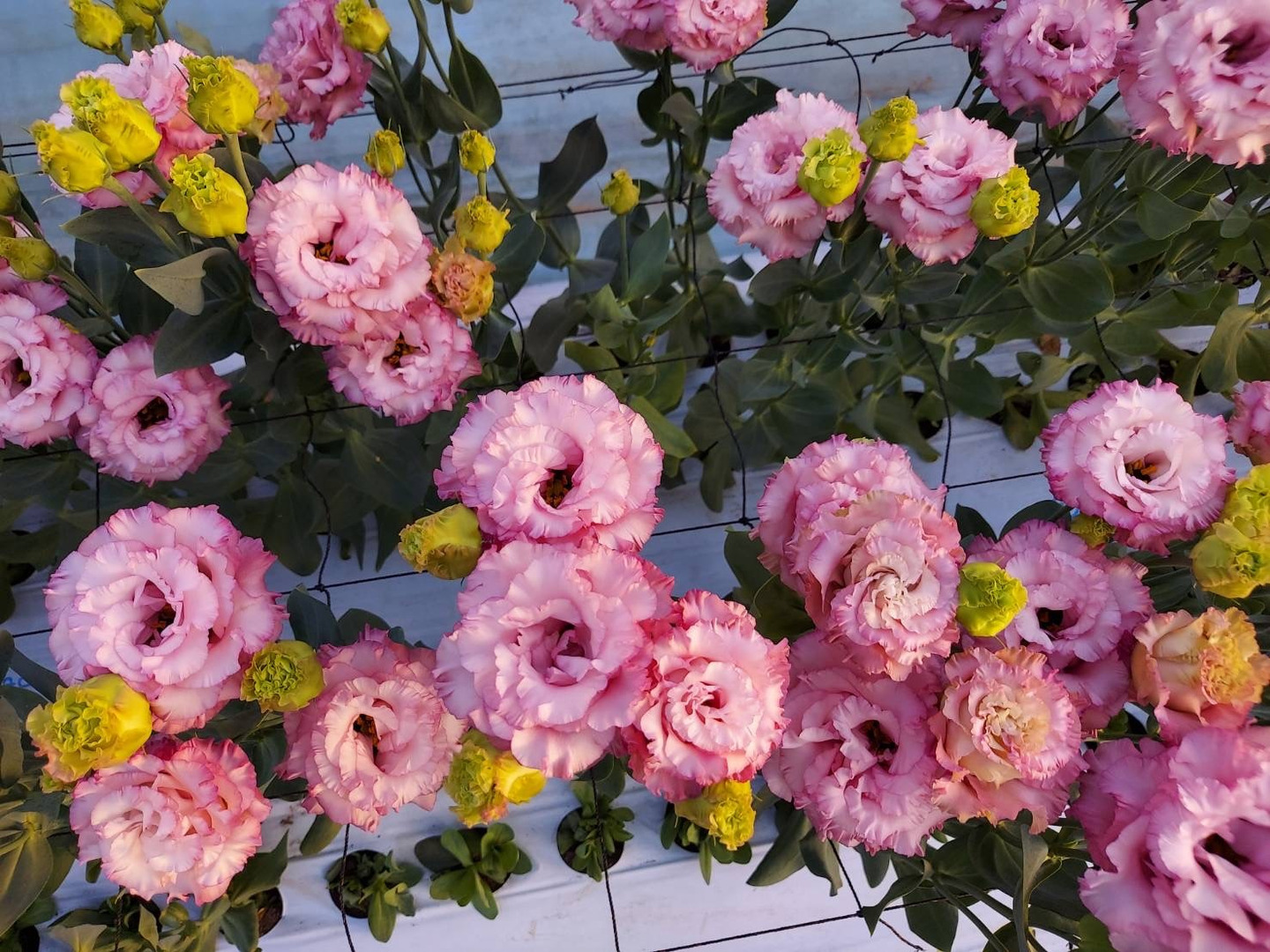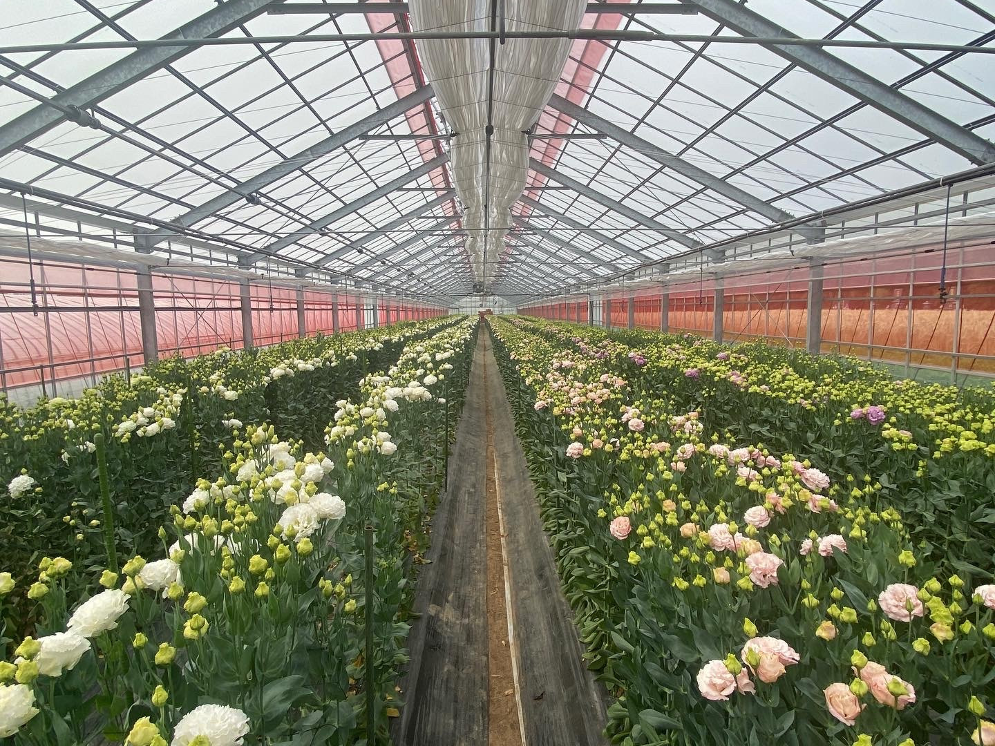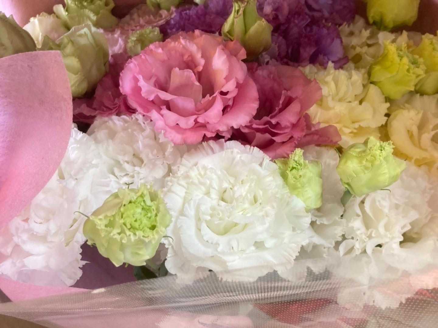 大輪のフリンジ(花びらの周りにあるウェーブ状のヒラヒラ)品種で白、ピンク、ライトピンク、紫、黄、緑の色を中心に栽培しております。
