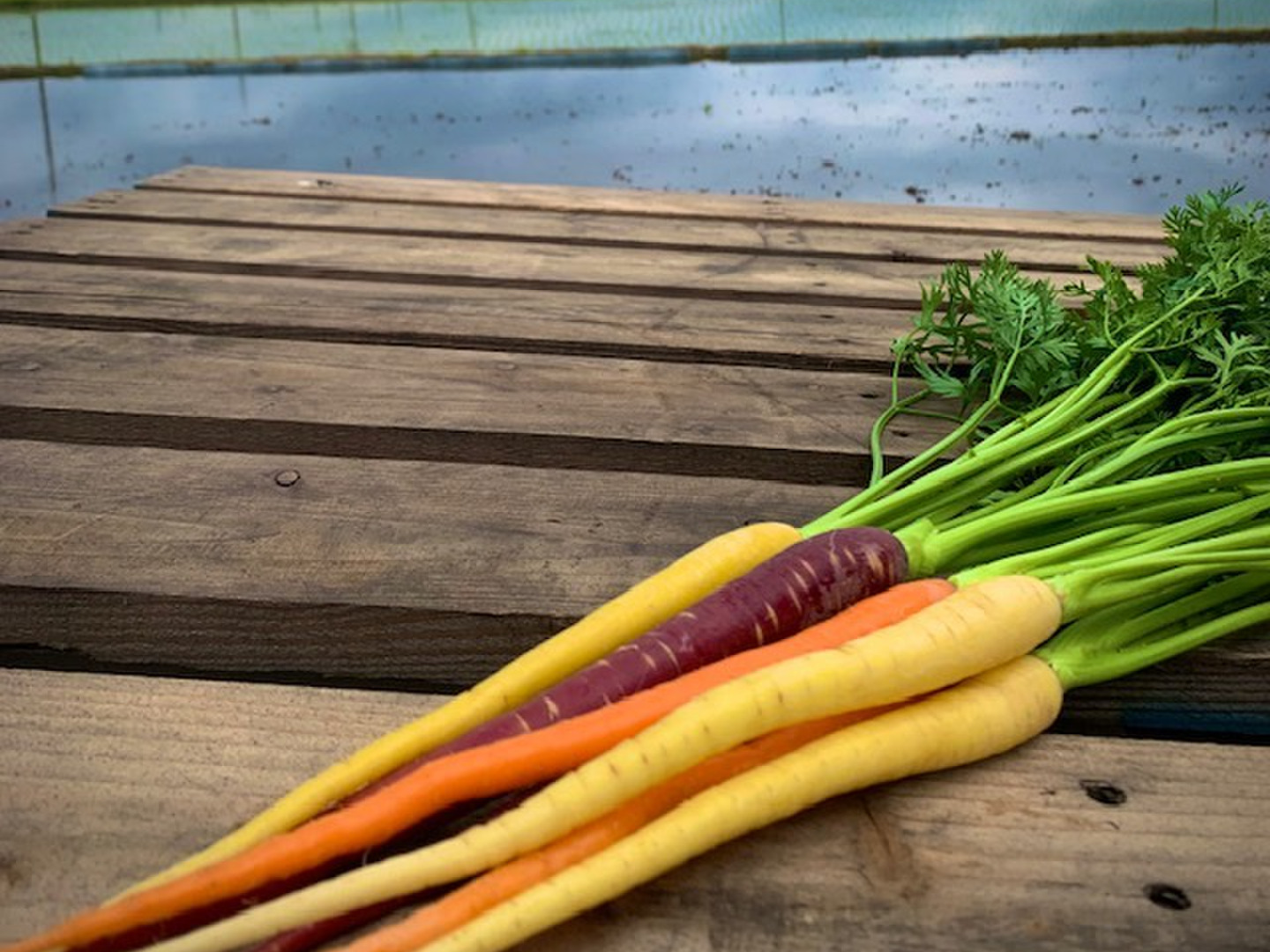 カラー人参3本と小松菜・水菜・山東白菜×2袋と訳あり人参1袋