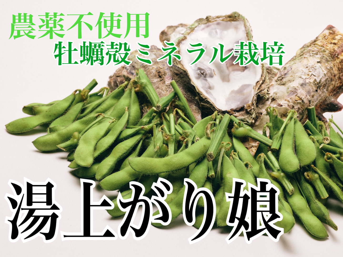 化学肥料は使用していませんが、枝豆の旨さを引き出す為に牡蠣殻を熱処理し砕いたものを土に混ぜています。また成長途中にも一株一株に牡蠣殻を追肥しています。