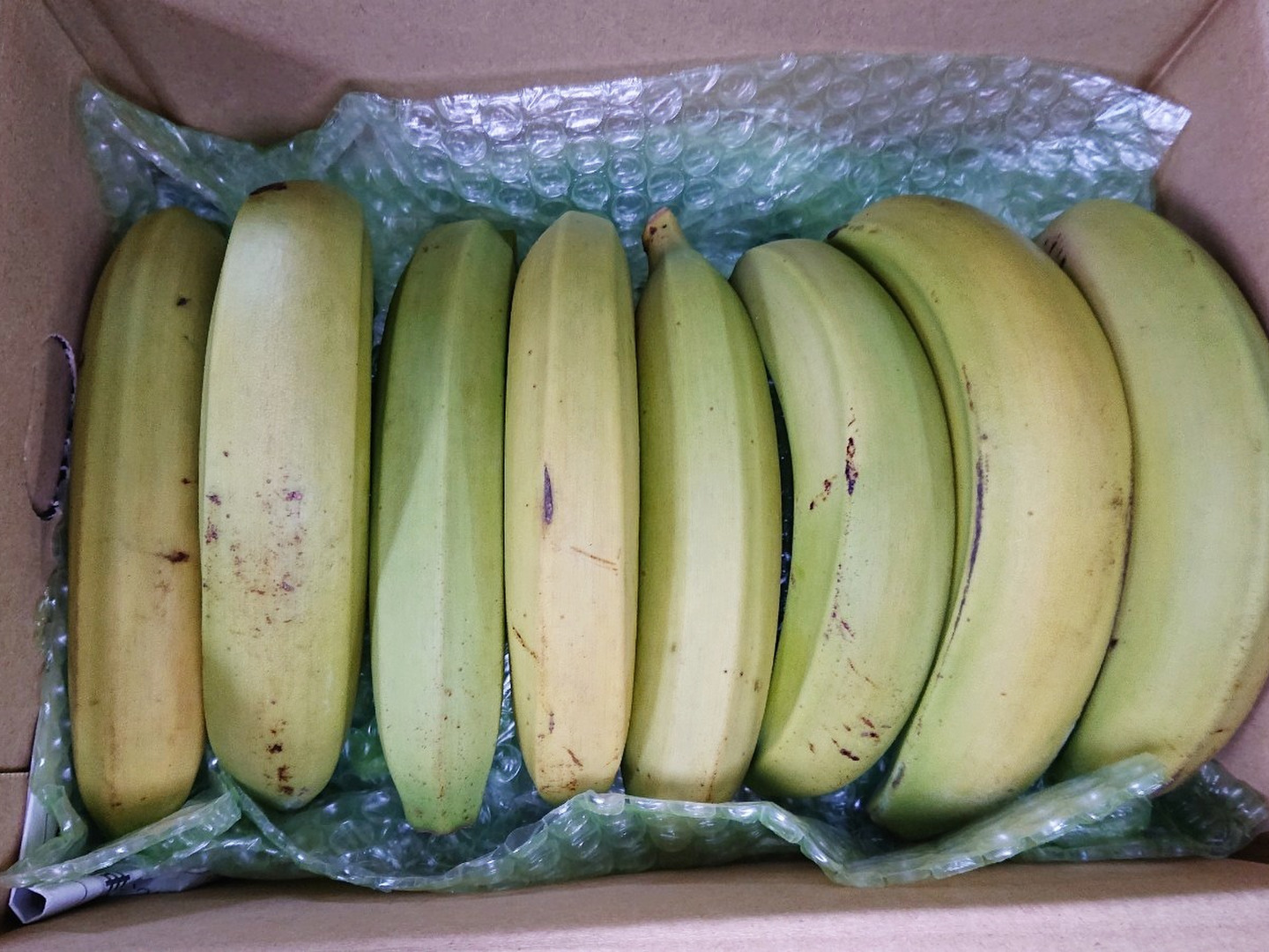 今国内に流通しているバナナの大半はジャイアントキャベンディッシュ種の系統ですが、昔はバナナと言えばグロスミッシェル種でしたが1950年代にパナマ病で世界中のグロスミッシェル種が姿を消し、パナマ病に強いジャイアントキャベンディッシュ種へと転換されました、かつて絶滅したと思われたグロスミッシェル種が偶々種子島に残っていてその中でも特別美味しい【中幹】を育てています、【中幹】は日本国内では殆ど栽培されていない珍しい品種です。