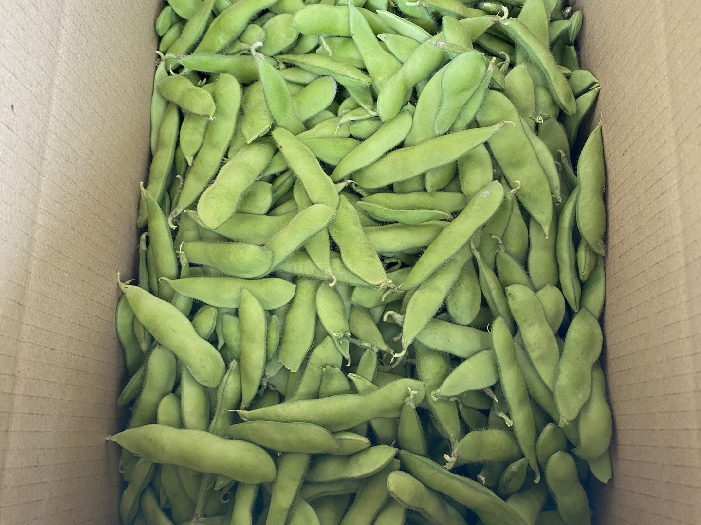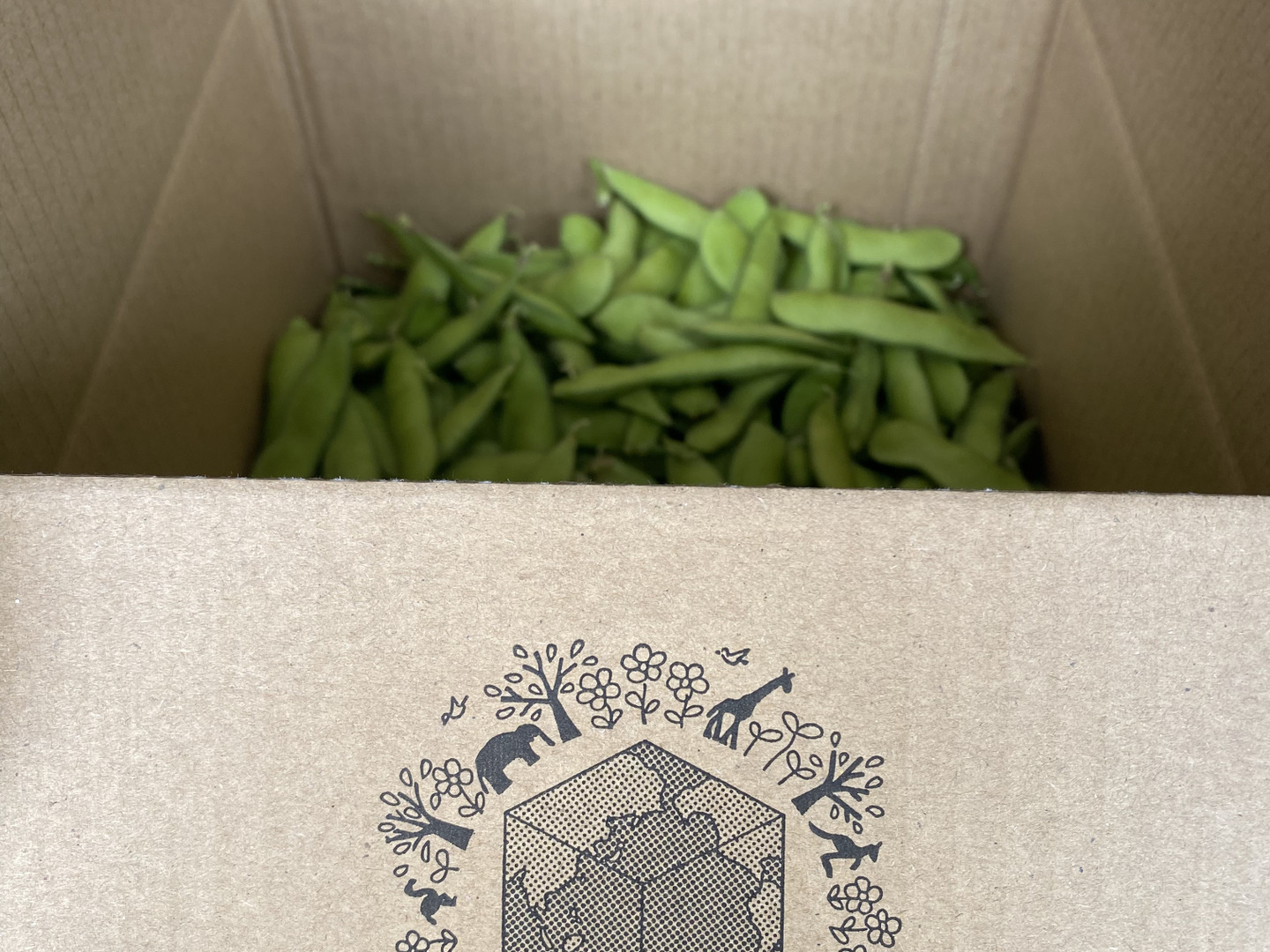 郵送に関してリサイクル紙を利用したダンボールに枝豆を2kgいれての郵送になります。