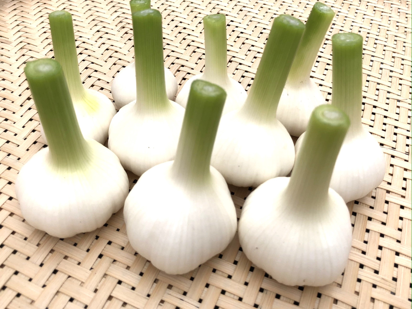 一般的にスーパーなどで売られている乾燥させたにんにくと違い、新鮮で水分が豊富で香りも味も強く絶品です。