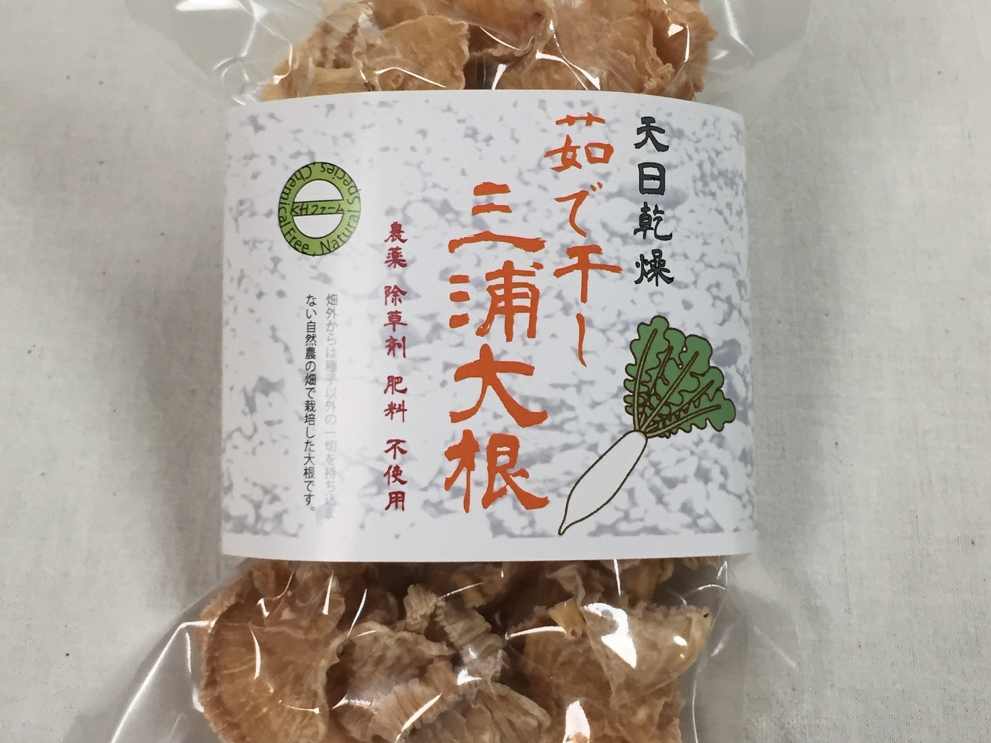 昔ながらの種から毎年自家採種して育てている三浦大根を、茹でてから天日干しにした自然栽培の固定種三浦大根です。