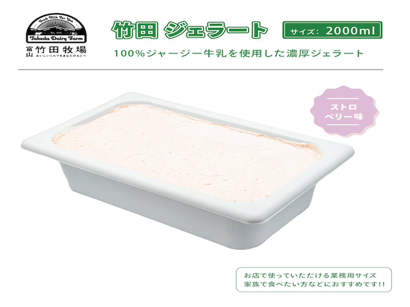 ジャージー牛乳の濃厚ジェラート!竹田ジェラート |ストロベリー味★2000ml★