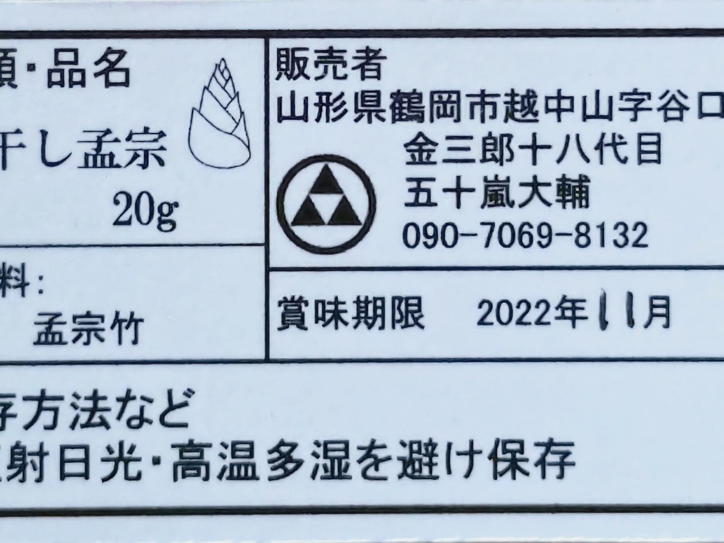 孟宗竹3㎏と干し孟宗20g
