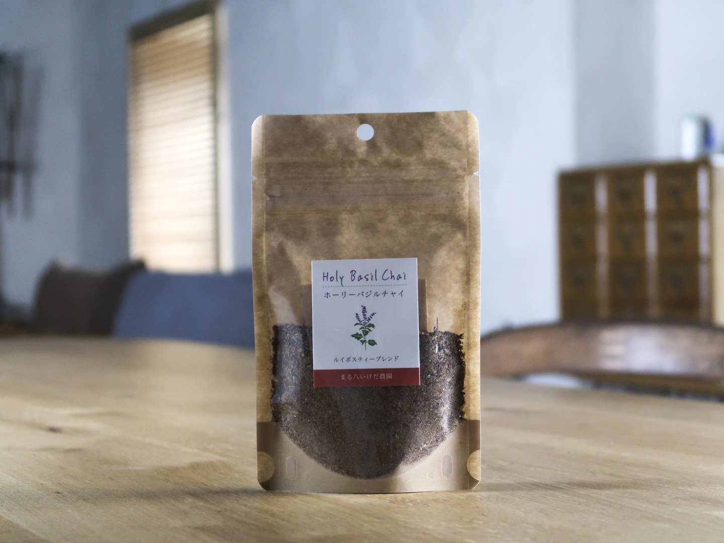 まる八いけだ農園が自然栽培で大切に育てたホーリーバジルに5種類のスパイスとルイボスティーをブレンドし粉末状にしました。
