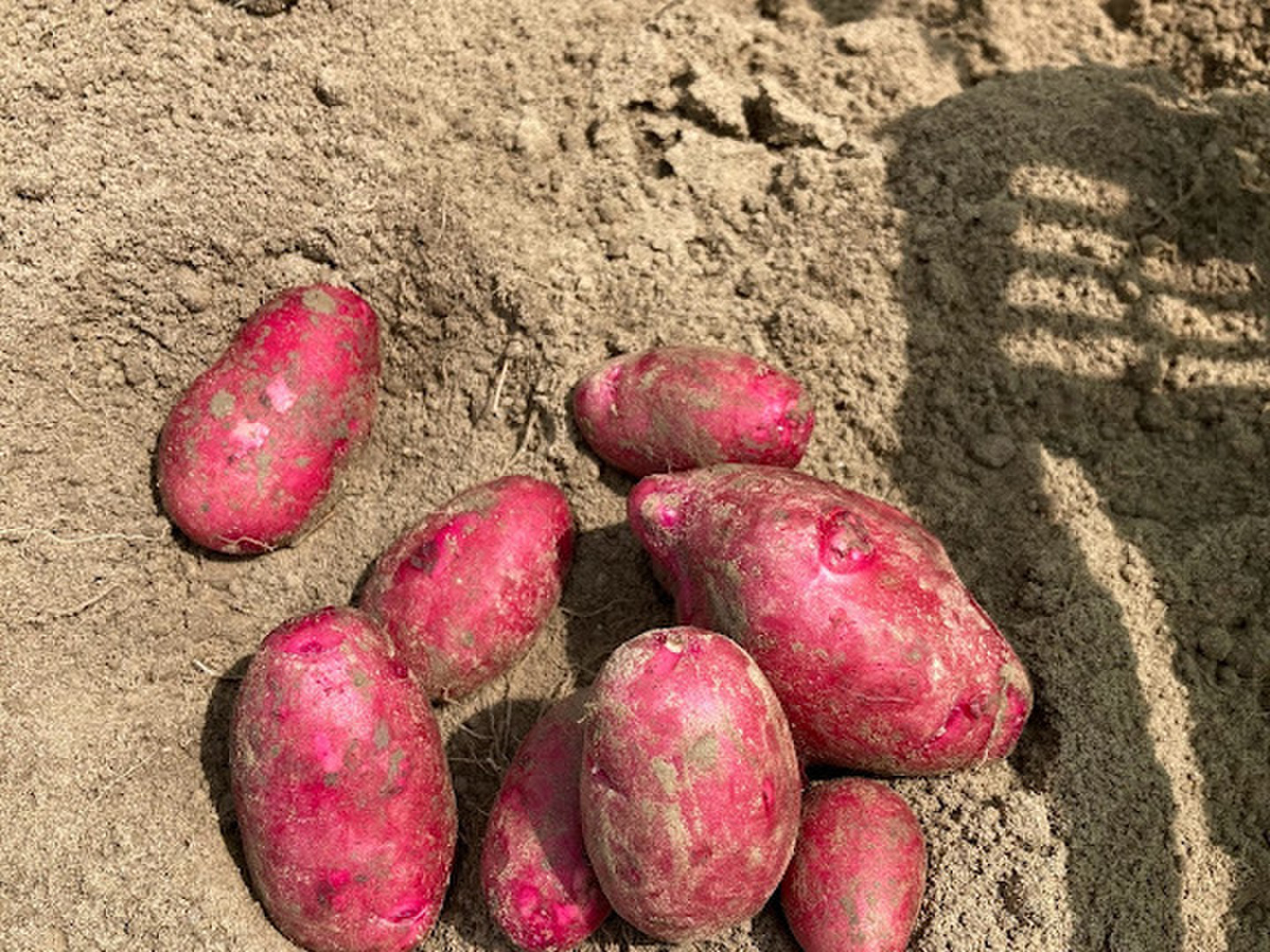 メークインのように細長い形状。品質も同様で、カレーなどの煮込み系のほか、ポタージュや薄切りにカットしたチップスでも美味です。