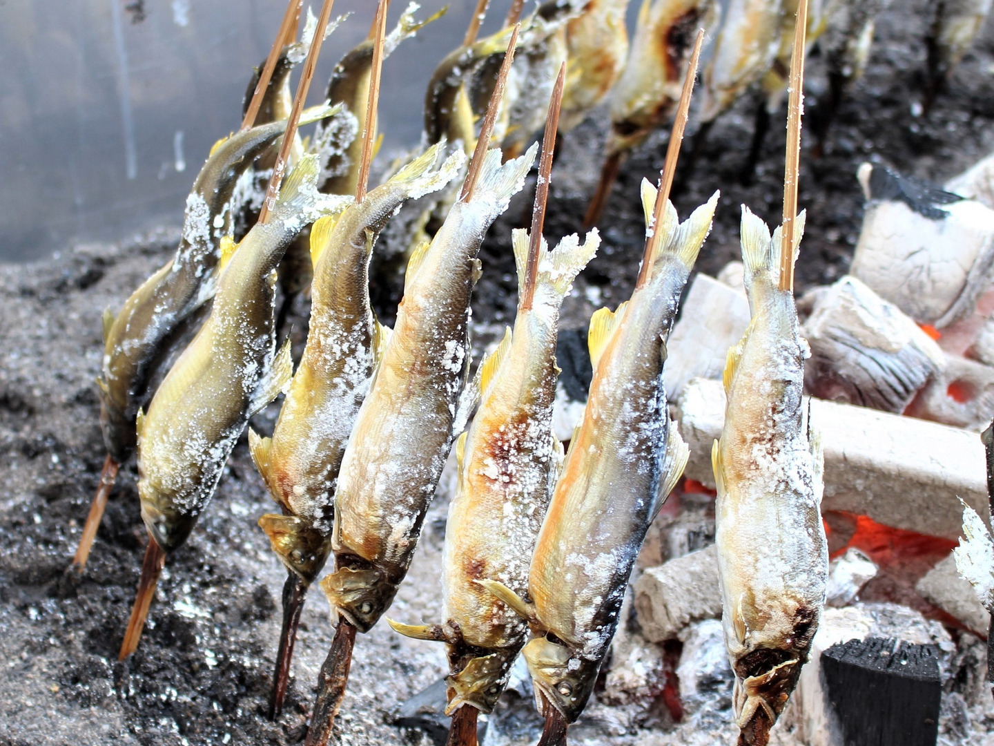 身全体に軽く塩をふり、焦げやすいヒレと尾には多めに塩をつけてください。グリルやバーベキュー、フライパンで、両面に色がつくまで焼いてお召し上がりください。