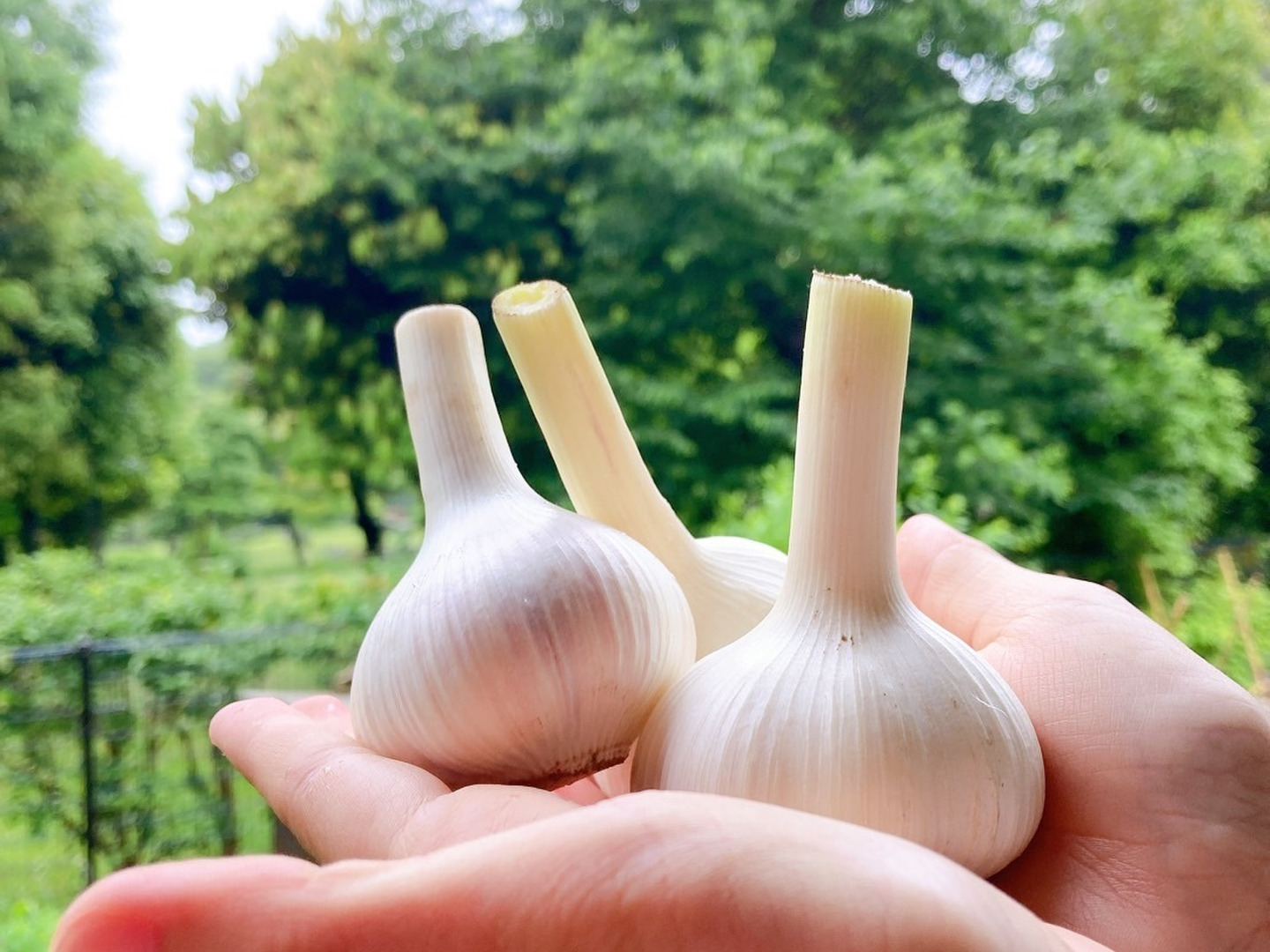5月下旬〜6月のニンニク収穫時期にしか食べられない生ニンニクです🧄