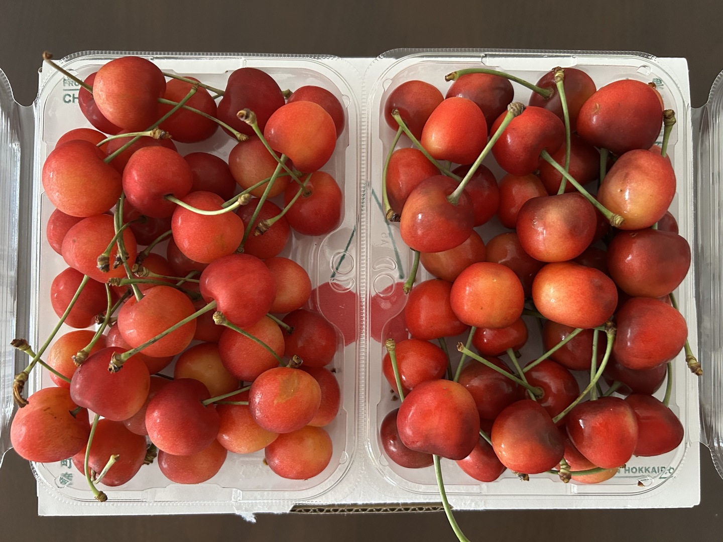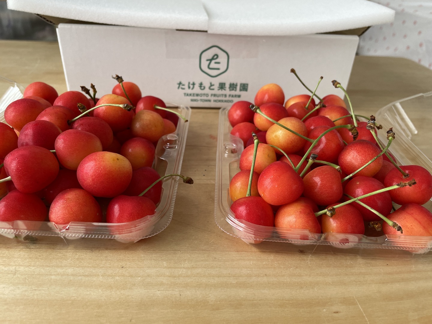 北海道仁木町産のさくらんぼ(佐藤錦)です。