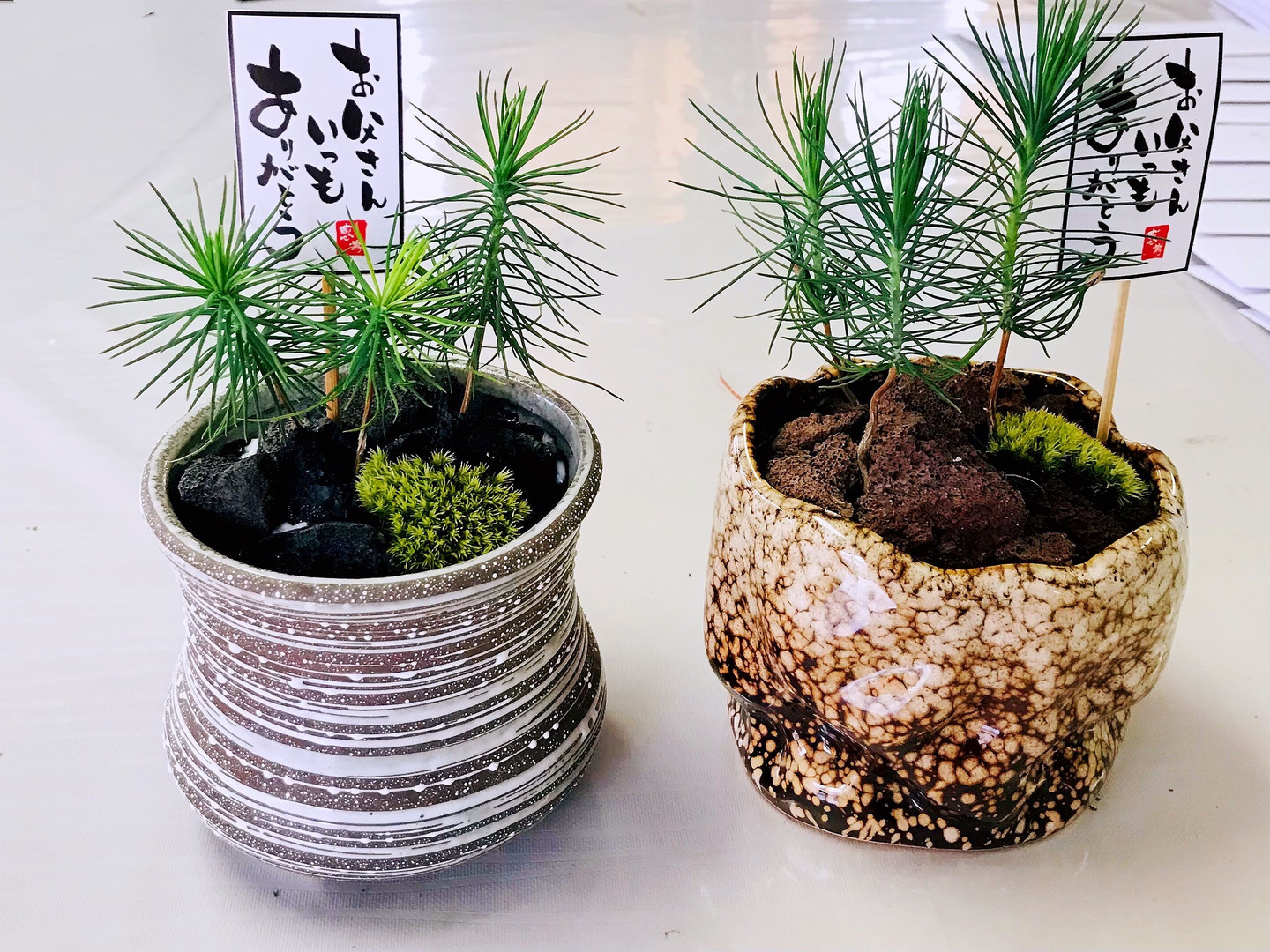 ギフトの内容はミニ松盆栽(台座付)と甘い「ほれトマト」200g*2袋のセットです。