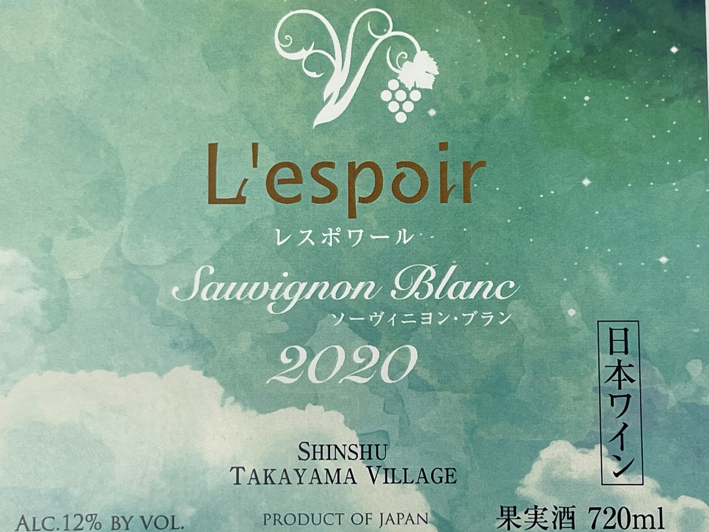 【2020年産】長野県産白ワイン レスポワール ソーヴィニヨンブラン2020