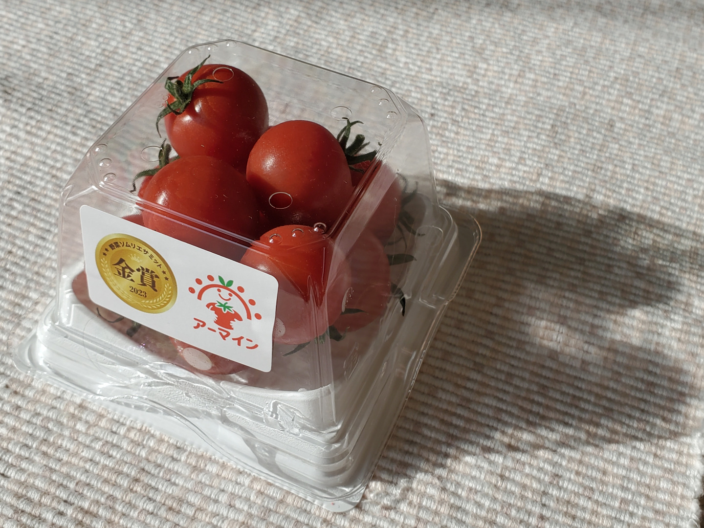 甘さがきわだち(糖度10%)、酸味、旨味がギュッと凝縮した濃い味のミニトマトの『アーマイン®』です。リコピン、GABAなどの機能性成分もタップリ。太陽の光に恵まれた埼玉県上尾市で、有機培土に有機肥料を与える自然由来の農法により大切に育てた0.7kg(5パック・化粧箱入り)です。2023年の野菜ソムリエサミットで金賞に輝きました。