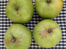 コロンと平べったい形がとてもユーモラスな青リンゴ「ブラムリー」です。