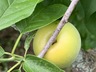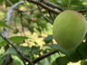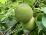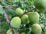 樹上で、部分的にほんのり黄色く色づいてきた「白加賀」です。