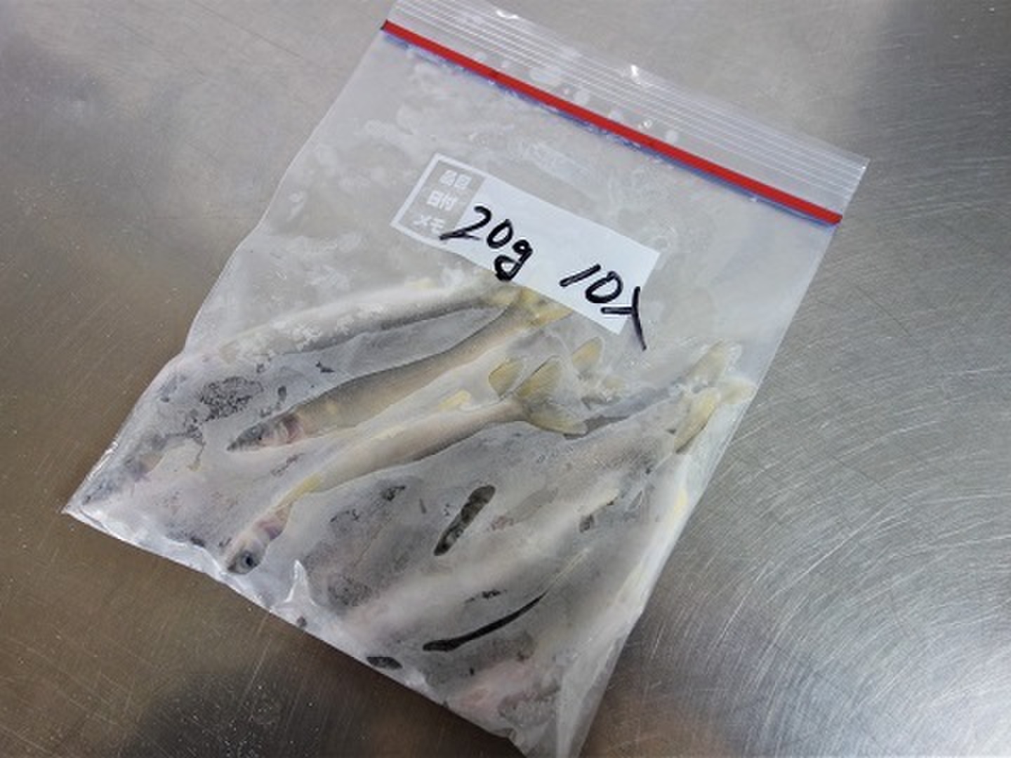 ※一般的な塩焼き用鮎のサイズの四分の一~五分の一。子供サイズの鮎です。