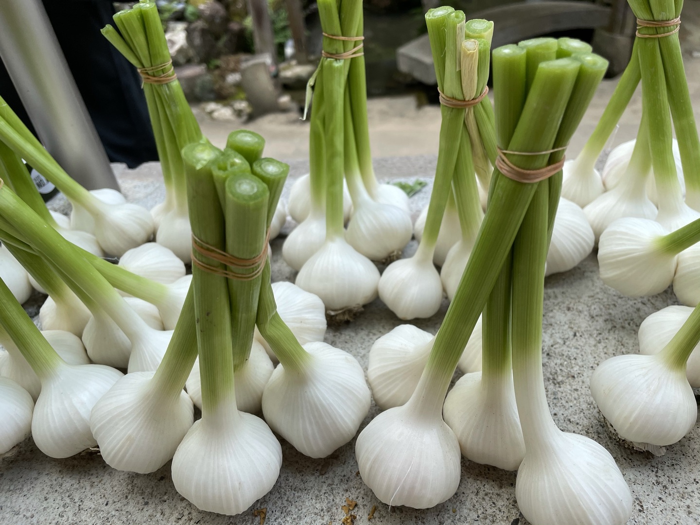 【農薬不使用🧄生にんにく】剥きたてほやほや 生ニンニクは今だけ!!茎付き小粒20〜25個 兵庫県丹波産こだわり有機肥料使用!化学肥料不使用 今時期限定!!