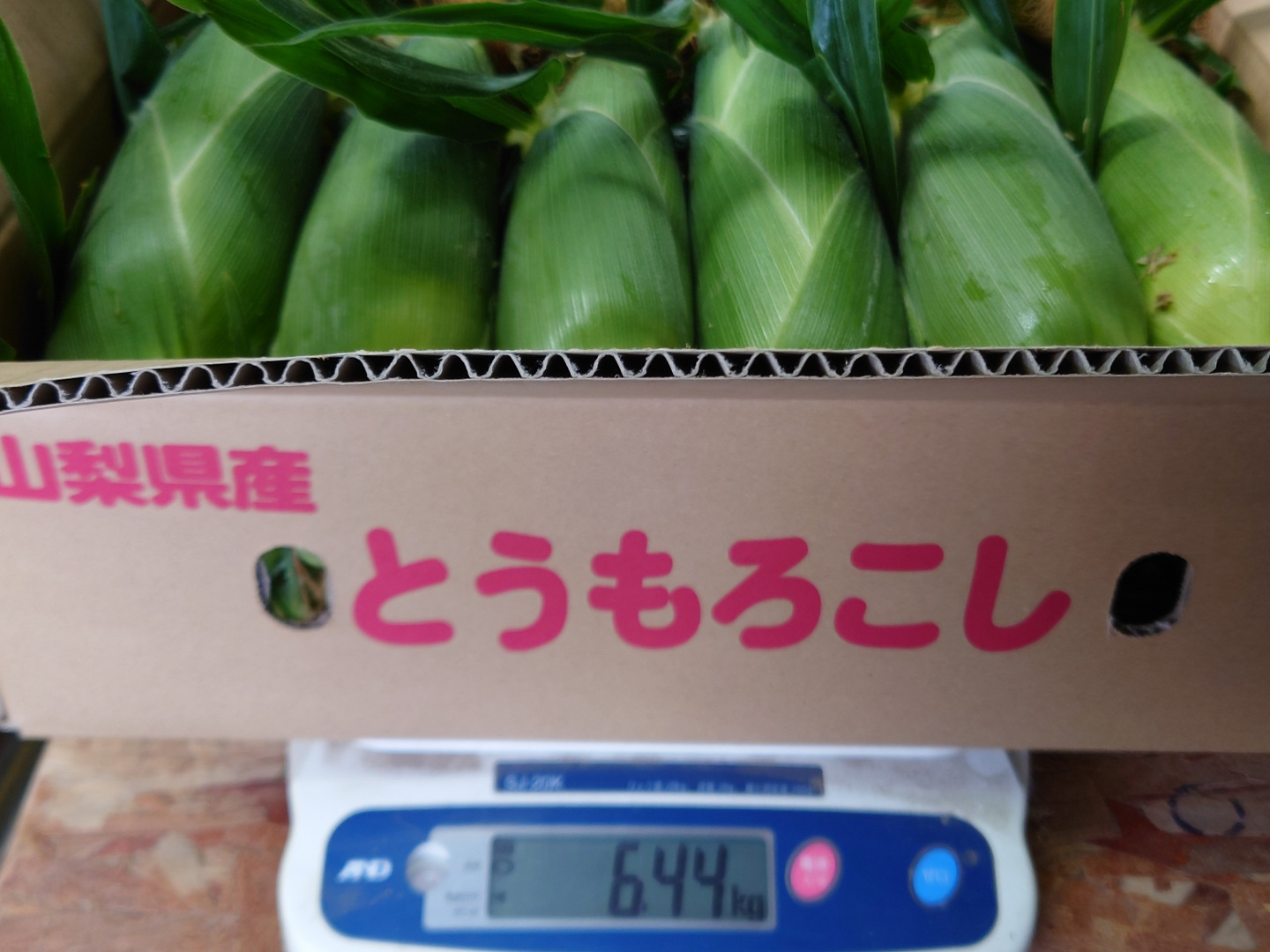 朝獲りトウモロコシ(1箱12本入り)・A2L品(規格は400g以上ですがボリュームの有るもの(500以上)を選んでお届けします。)