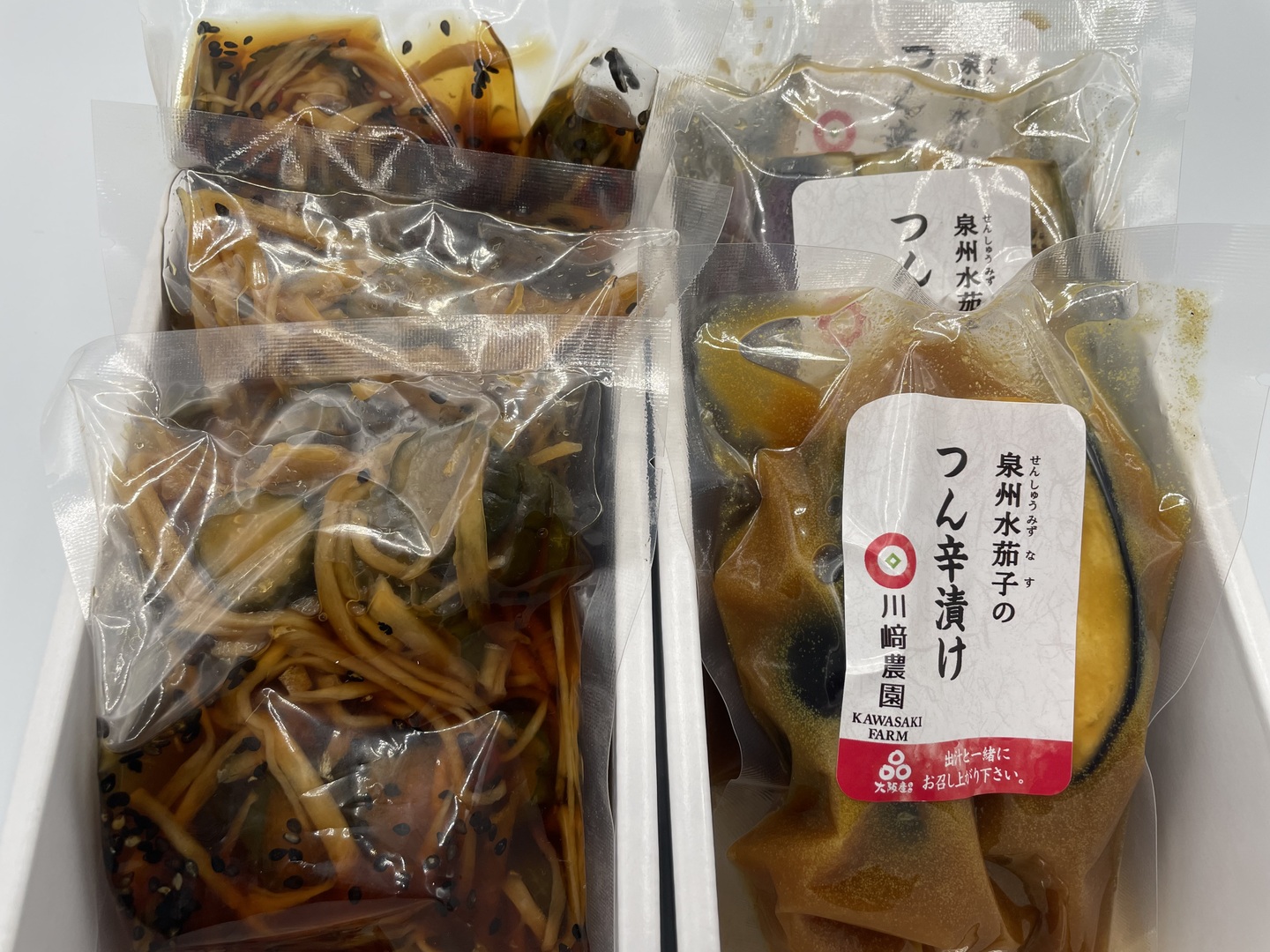 泉州水なすつん辛漬け3袋・四葉きゅうりのうまきゅう3袋