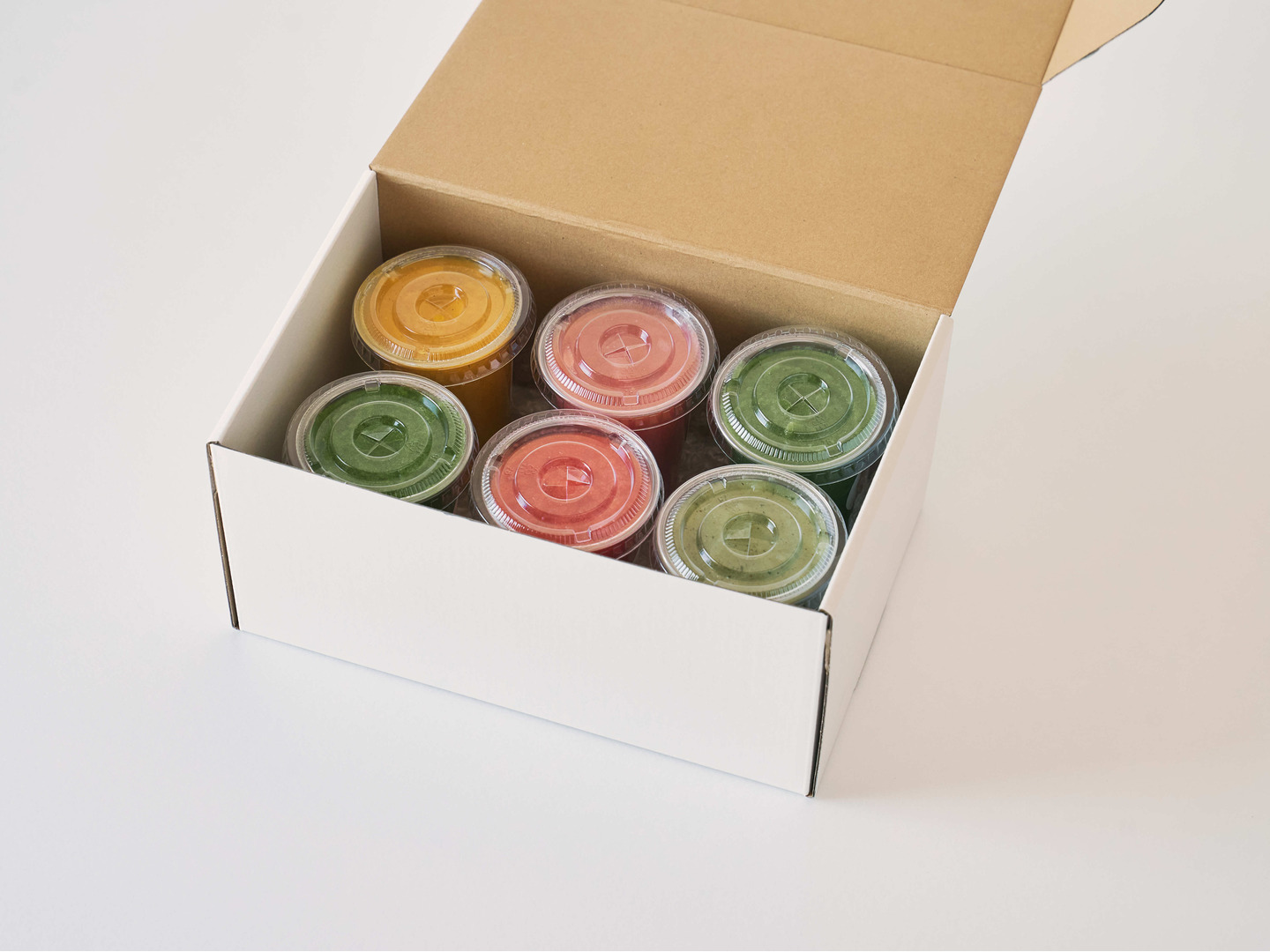 - 4 冷凍で出来上がった状態でお届けするので、あとは解凍して飲むだけ