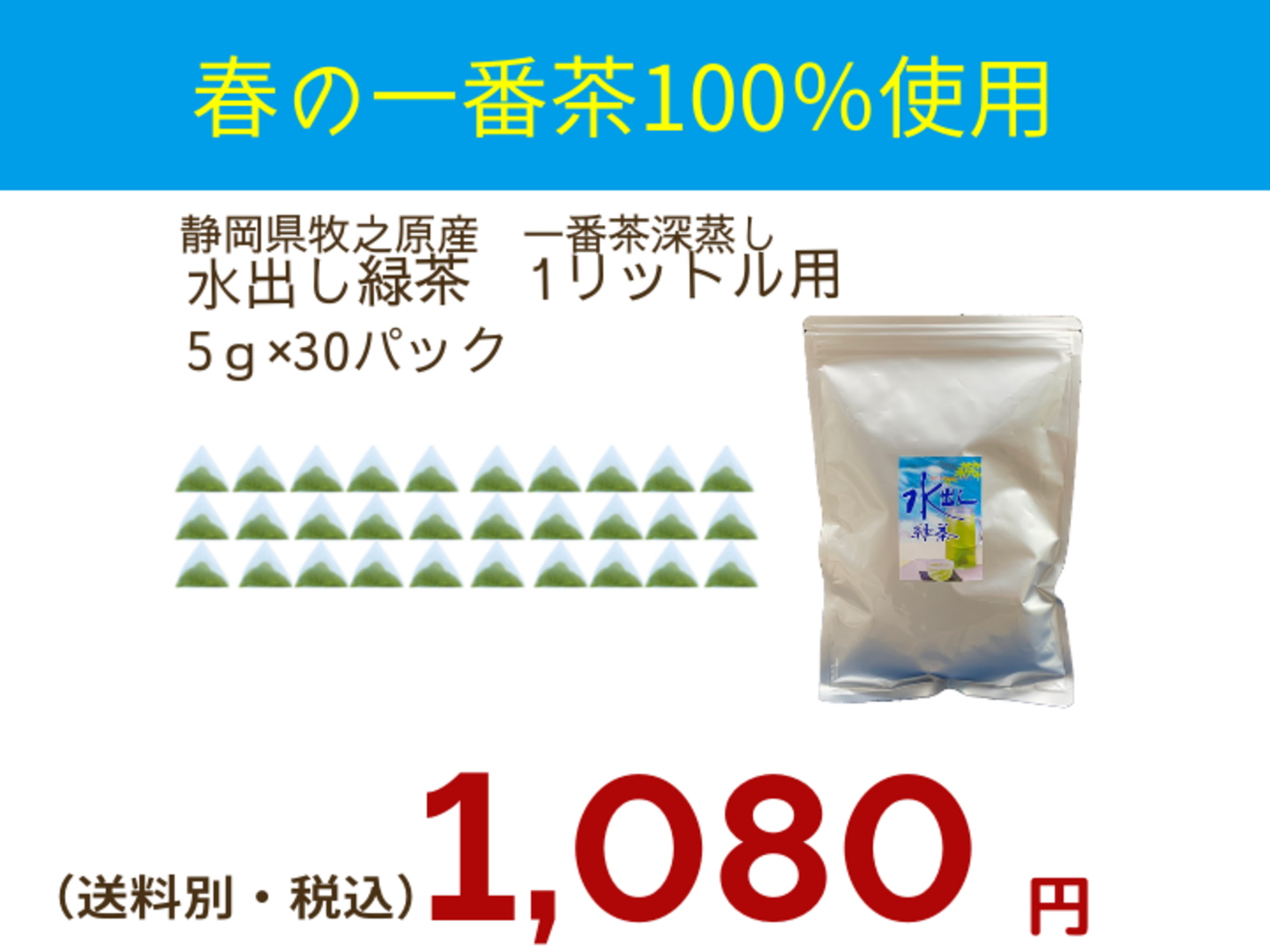 春の一番茶100%使用!水出し緑茶 1リットル用 5g×30パック(1袋でペットボトル60本分)