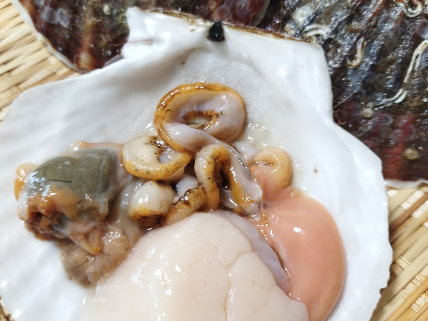 真冬の卵がパンパンのホタテが好きな人もいれば、この時期の貝柱がメインの