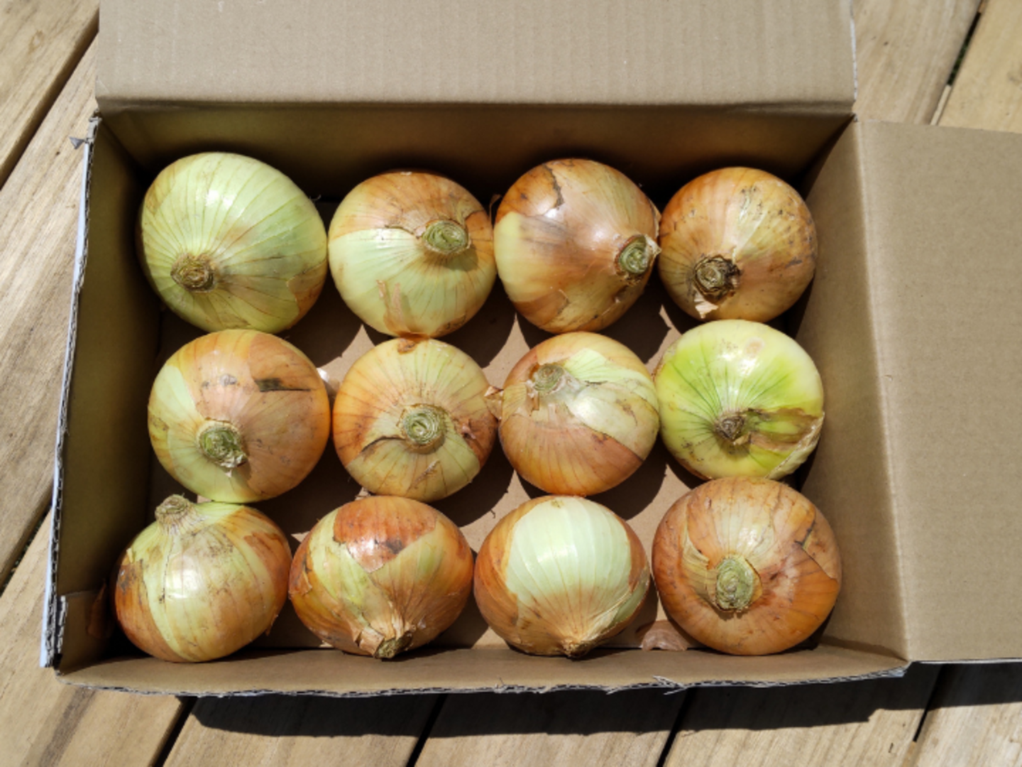 農薬を使わずに育てた玉ねぎを箱に約3キロ入れて発送させて頂きます。