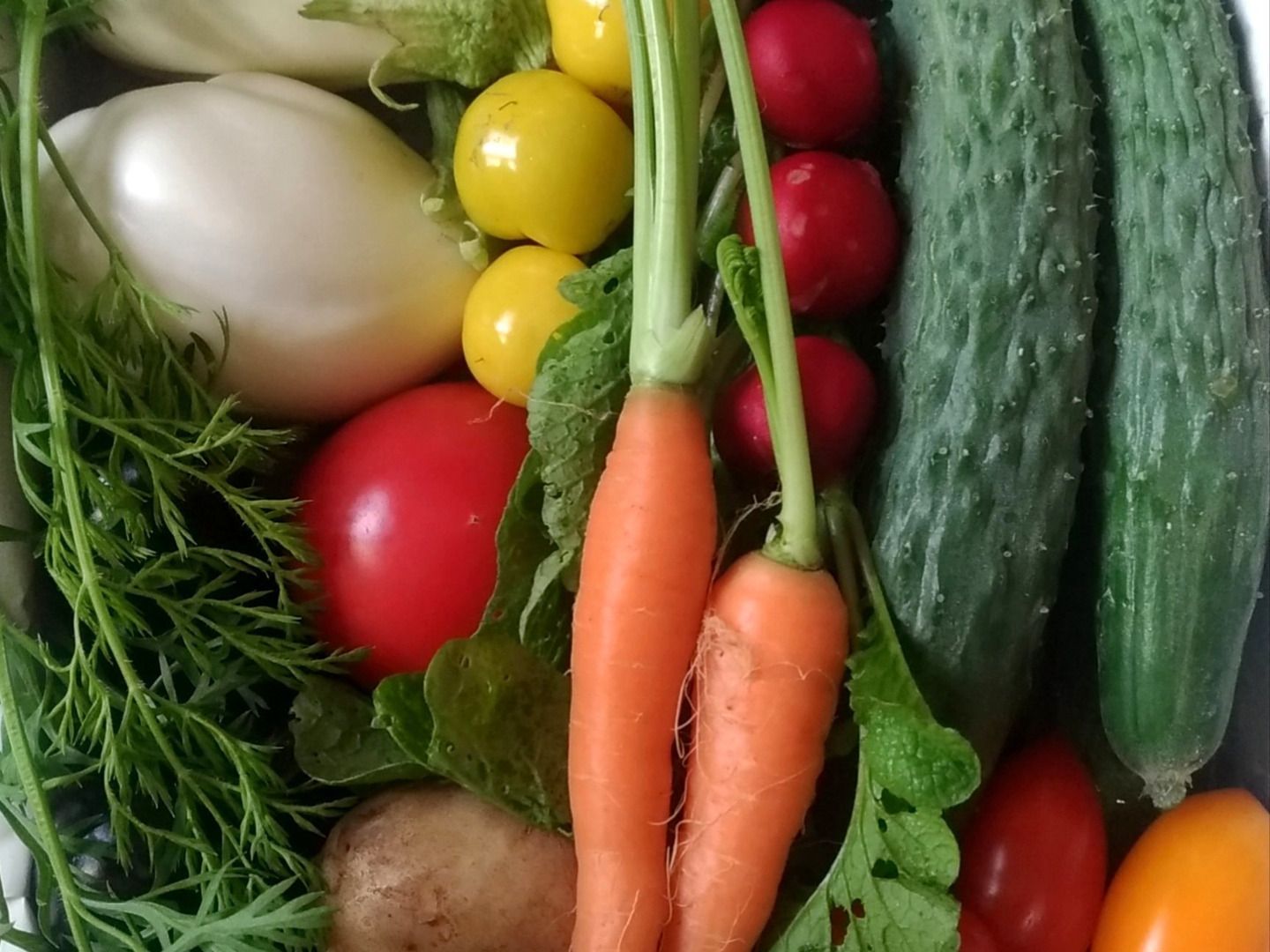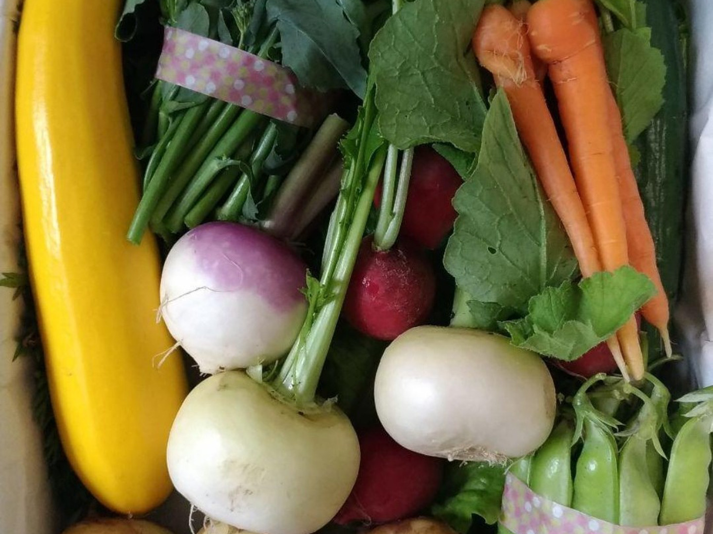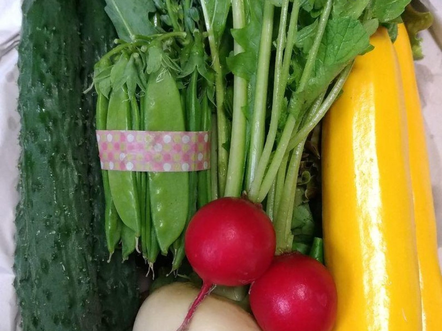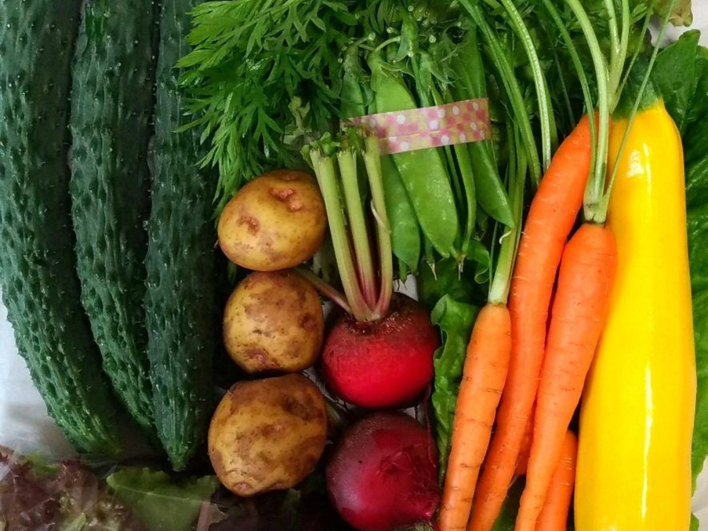 きゅうり、ズッキーニ、ナス、ビーツ、トマト、ピーマン、ししとう、絹さやえんどう、グリンピース、新じゃが、小松菜、チンゲンサイ、サラダ菜、サニーレタス、サンチュ、ルバーブ、アップルミント、オレガノ、ゴボウ、ルバーブ、カブ、ミニ大根、ラディッシュ、エディブルフラワー、ベビーリーフなど