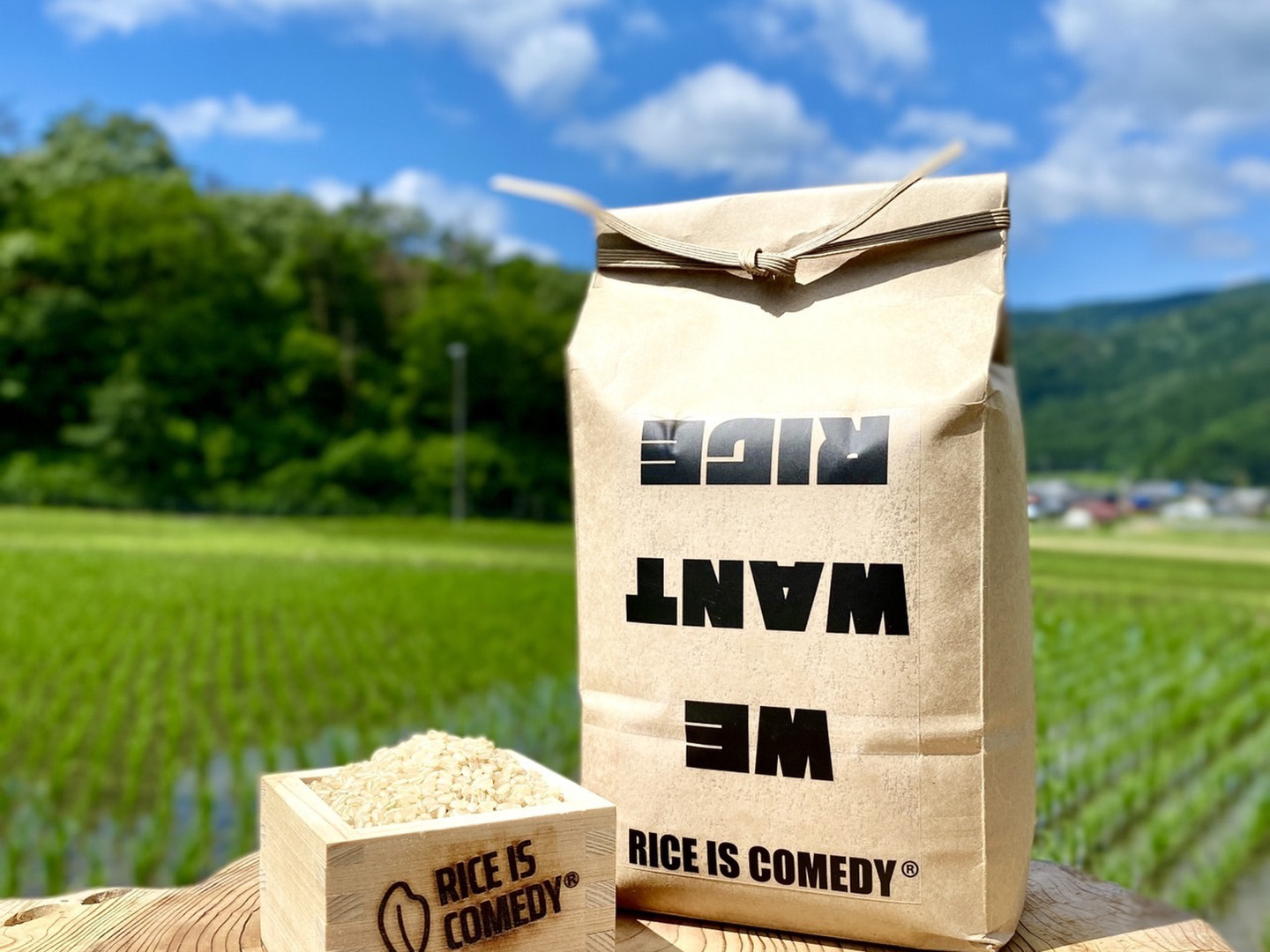 『まるこ米』は、滋賀県の琵琶湖最北端にある西浅井町というまちで、地元出身の20~30代のメンバーが集まって『RICE IS COMEDY(米づくりは喜劇だ)』というコンセプトを掲げ、1000%楽しみながら米づくりを行うことで、世界中の農家にエールを送り、これまでの農業の価値観を変えるために育てているコシヒカリです。