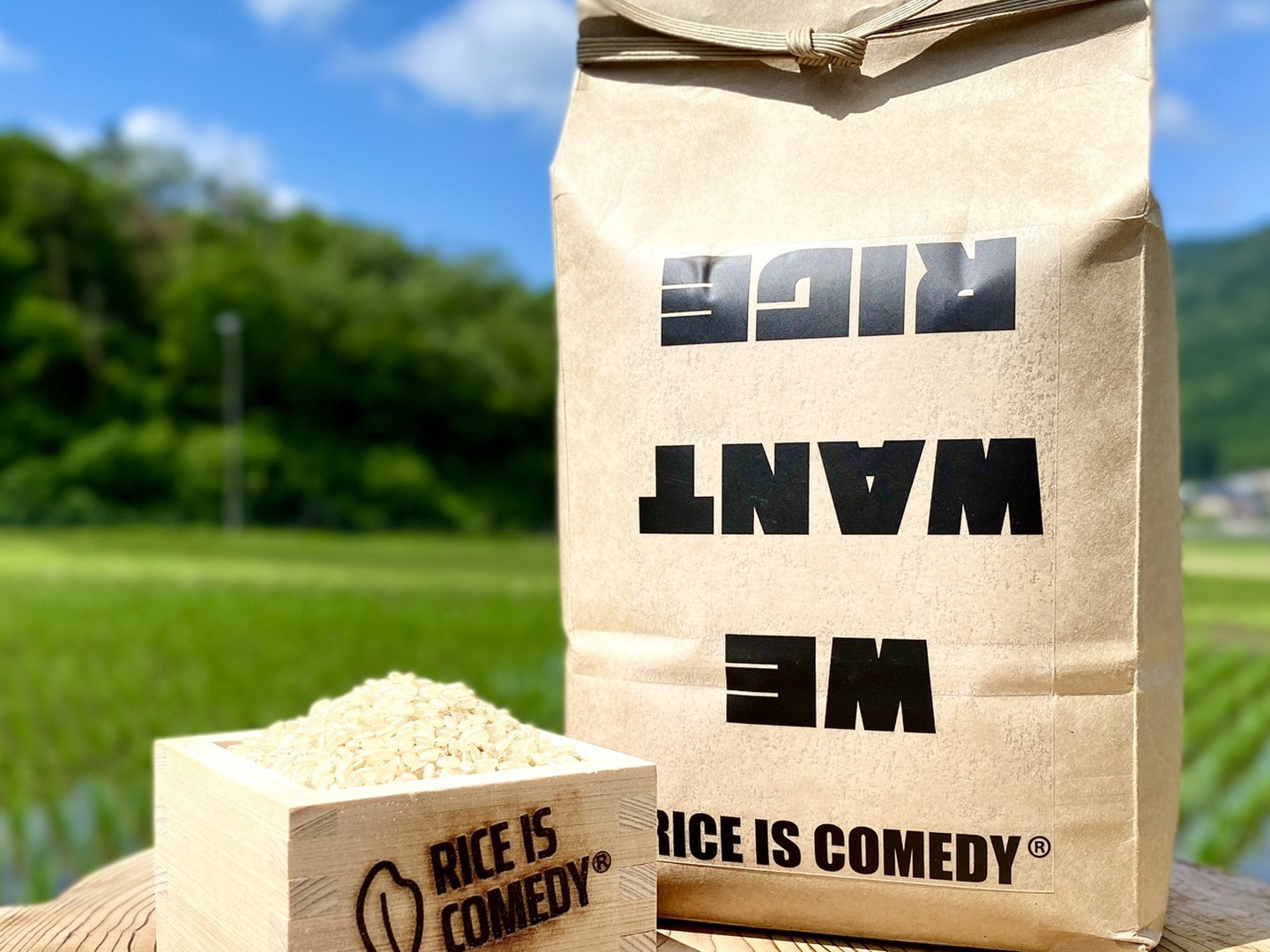 『まるこ米』は、滋賀県の琵琶湖最北端にある西浅井町というまちで、地元出身の20~30代のメンバーが集まって『RICE IS COMEDY(米づくりは喜劇だ)』というコンセプトを掲げ、1000%楽しみながら米づくりを行うことで、世界中の農家にエールを送り、これまでの農業の価値観を変えるために育てているコシヒカリです。