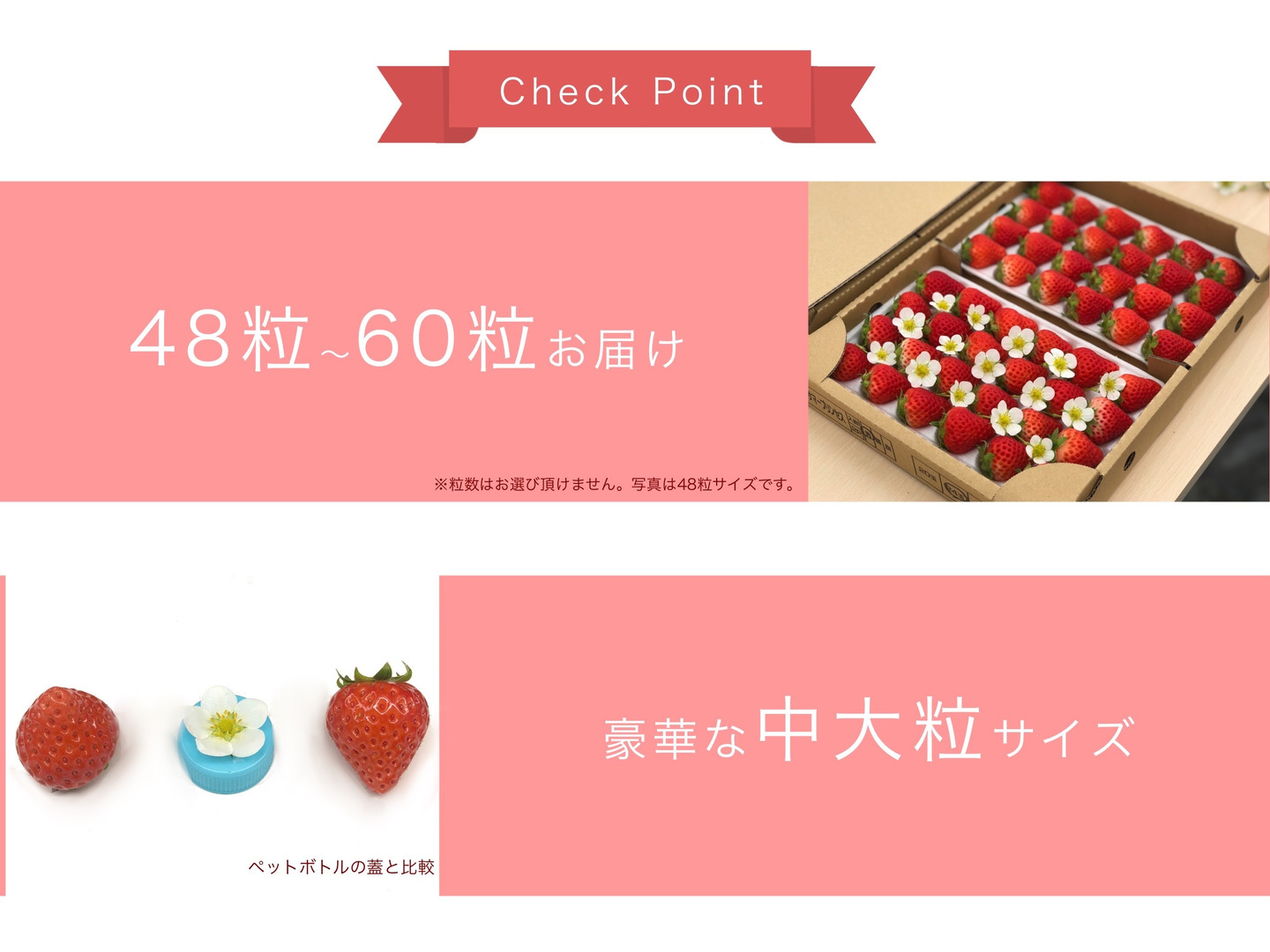 夏秋イチゴ。合計48粒~60粒入り。1トレー当たり24粒入り又は30粒入りで、合計2トレーのセットです。粒数はお選びできません。(2トレー合計で、スーパーのイチゴ2パック分ほどの重さです)