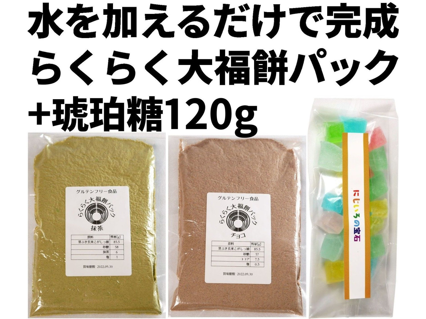 らくらく大福餅パック(抹茶、チョコ)各150g、琥珀糖120g