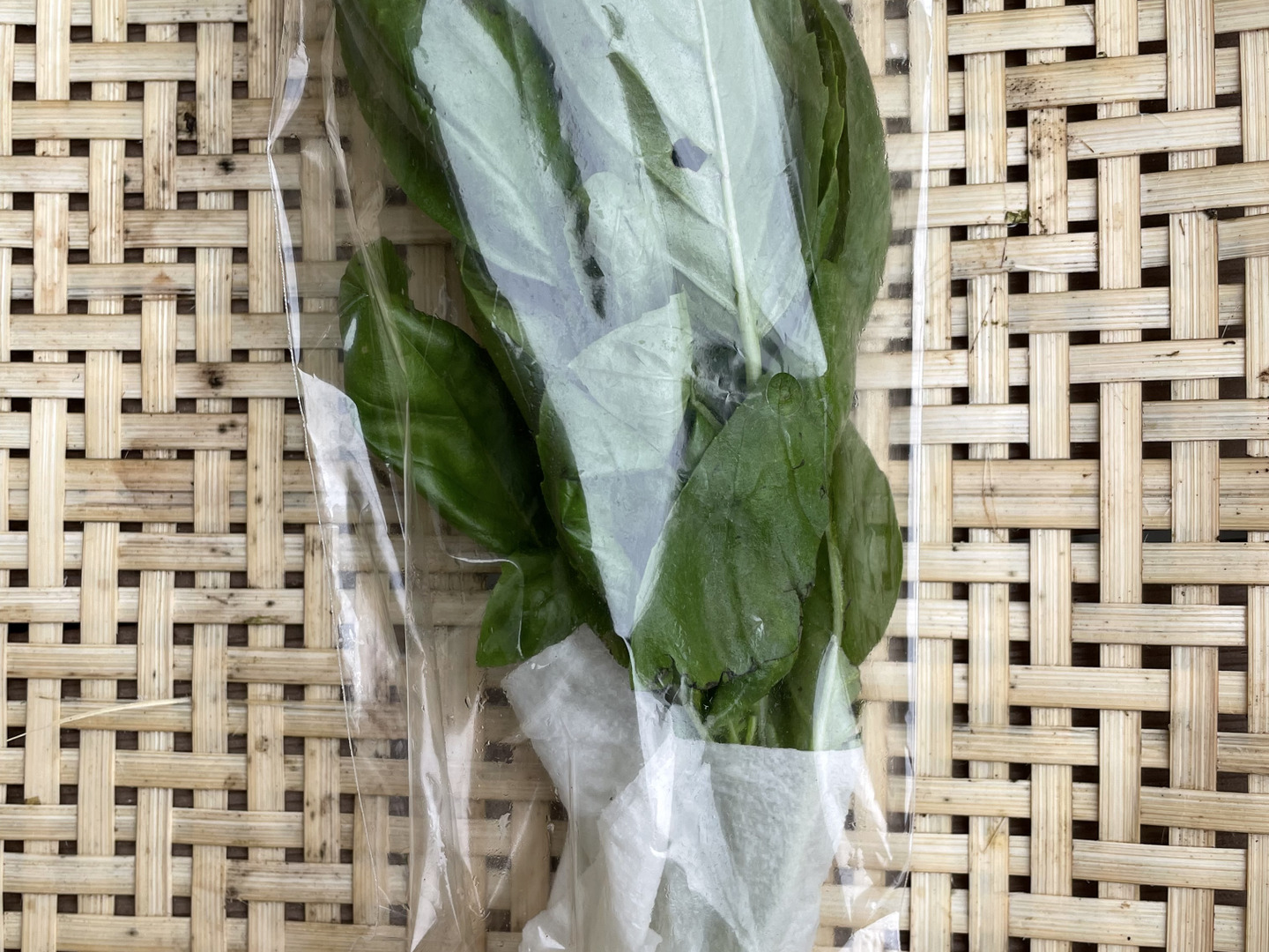 袋で保存するのであれば茎から葉を摘み、濡らしたキッチンペーパーで包んでから保存袋に入れて下さい。
