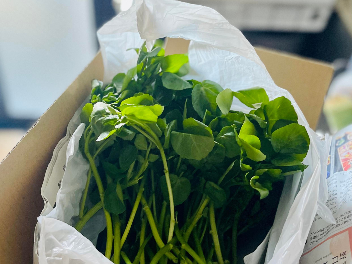 通常、クレソンは100gごとに個包装しています。今回の増量版/簡易包装版では、小分けせず、ダンボールに詰めての発送となります。