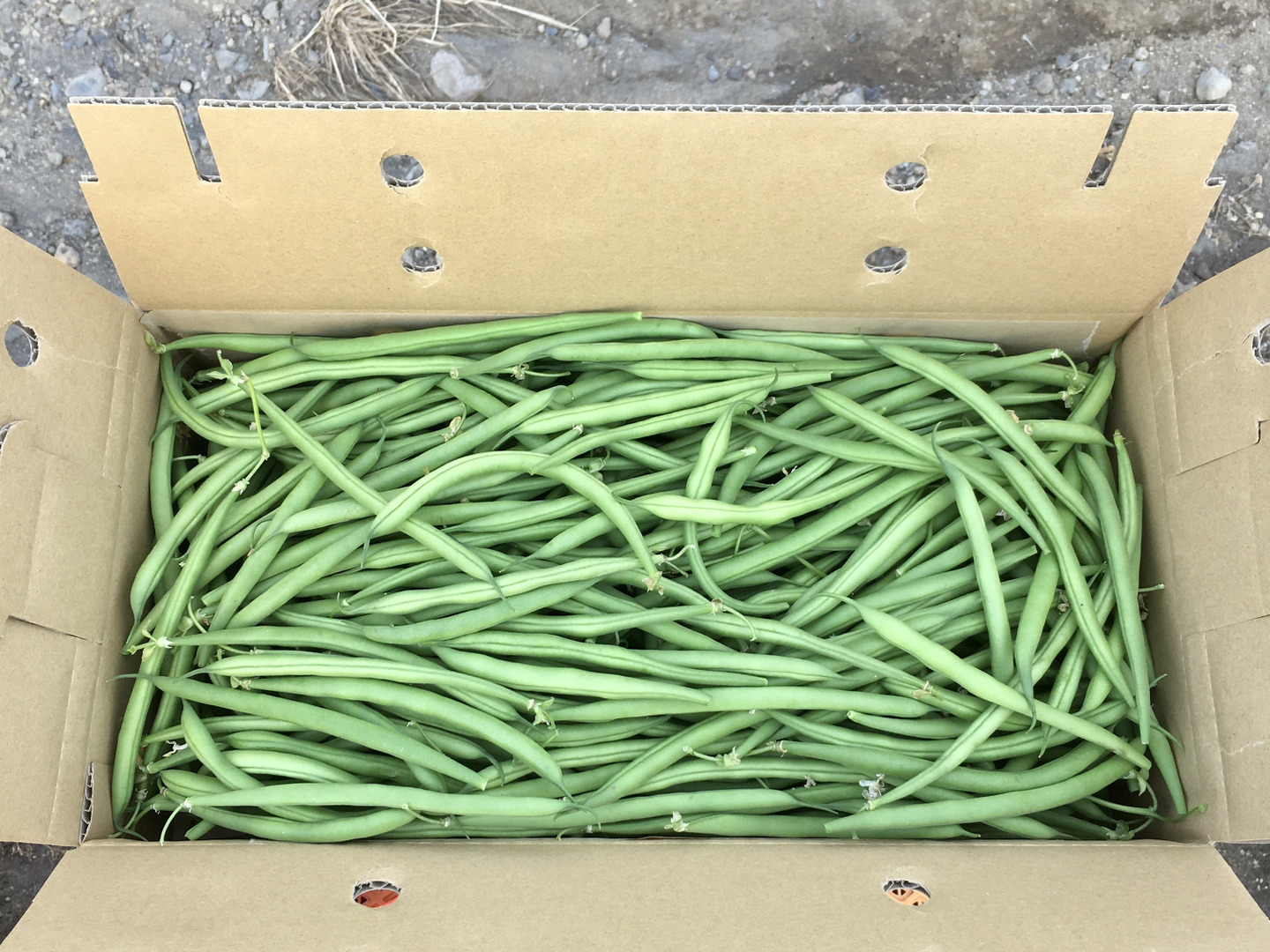 鹿児島産のサヤインゲン注文を受けてから、収穫日に収穫した箱込み1.5キロ前後を畑の空気も収穫しながらAB品大中小混合箱詰めして、当日発送します^_^