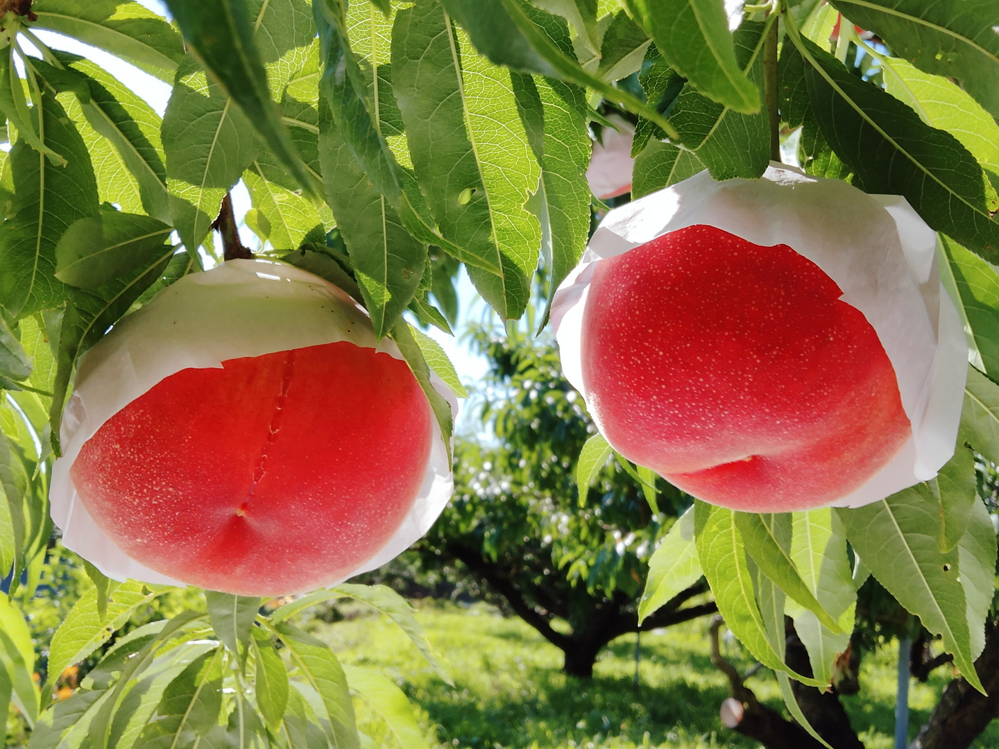 【農薬節約栽培】慣行栽培より20%農薬を少なく栽培しております❗桃の袋掛け以降、収穫するまでは農薬は使用しておりません❗(除草剤は除きます)