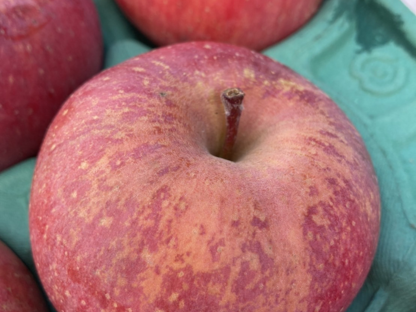 - 鮮やかな赤色とスッキリした甘みの有袋ふじ