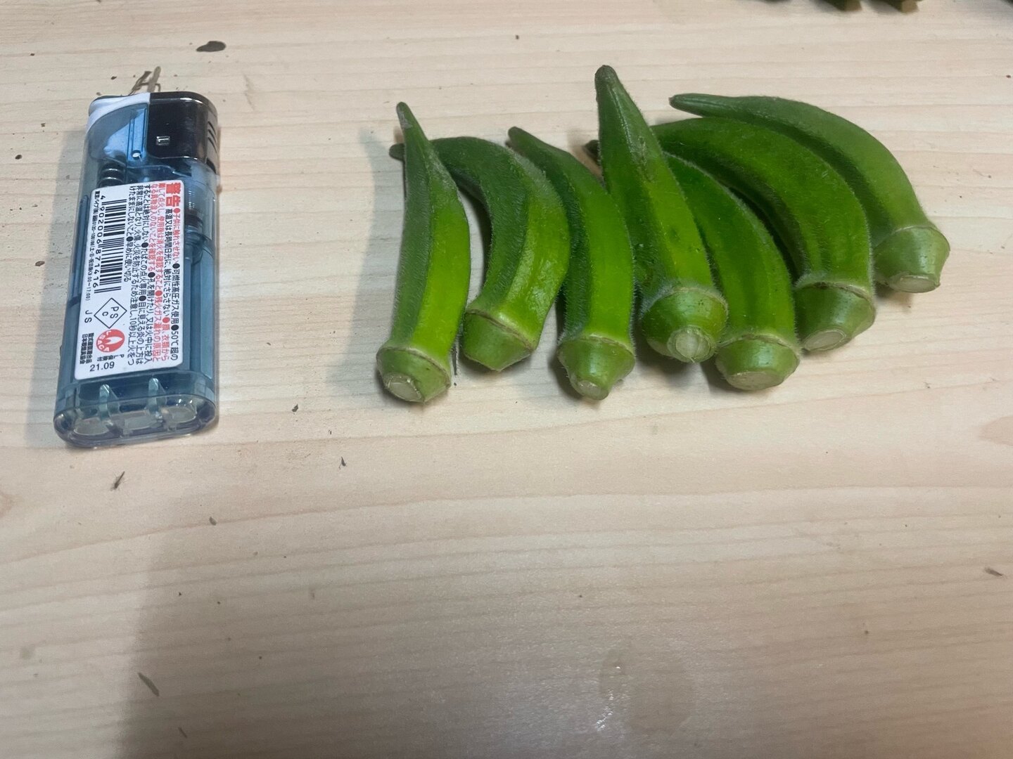 曲がっていたり不整形なオクラです。スーパーには絶対出て来られず、収穫時に畑で切り捨てられるオクラたちで、大変忍びない!