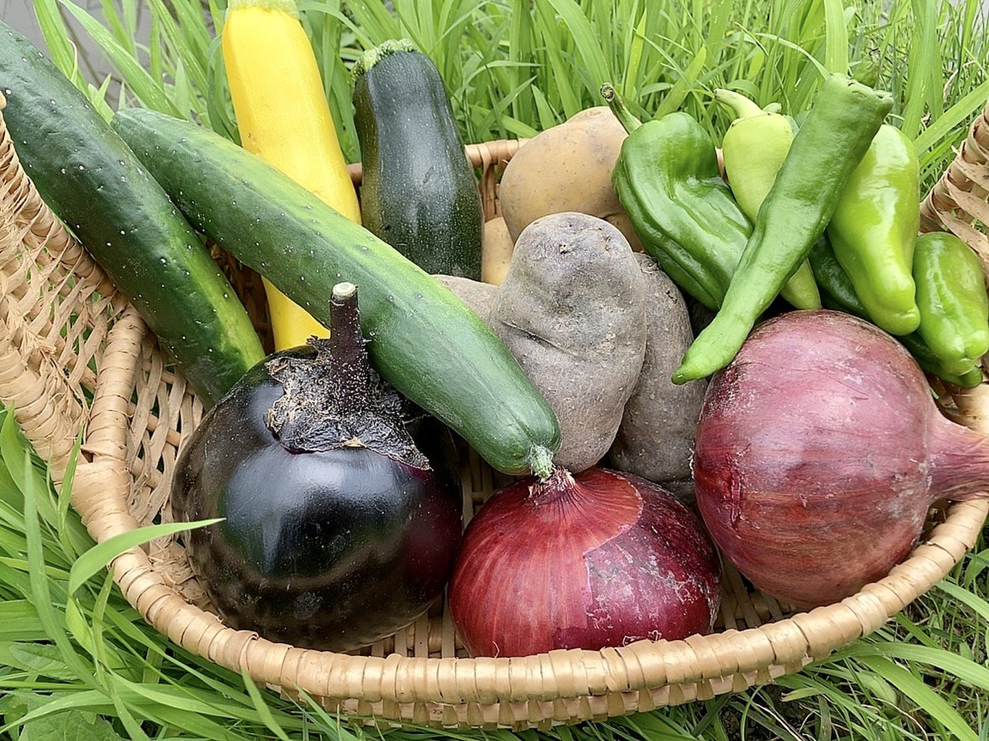 ①新ジャガイモ2種類(キタアカリ・シャドークイーン)、