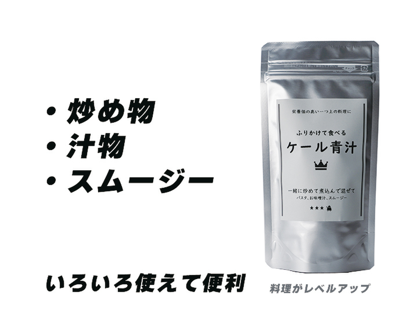 野菜不足が心配な家族の料理にパラパラと!ふりかけて食べるケール青汁